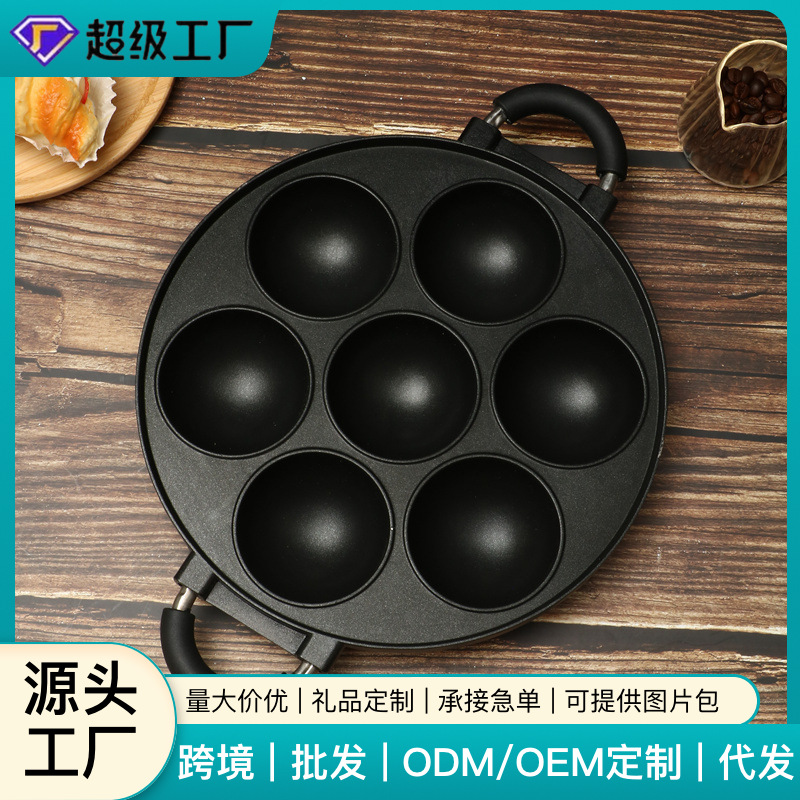 7穴の卵の子のダイカストの焙煎の皿の多機能のたこ焼きのケーキの鋳型は丸穴の焙煎の皿を脱ぎやすいです。