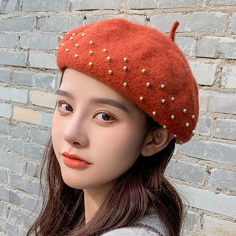 新型女性ベレー帽韓国版純色シンプルファッションアウトドアレジャー保温画家帽子文芸カボチャ帽子