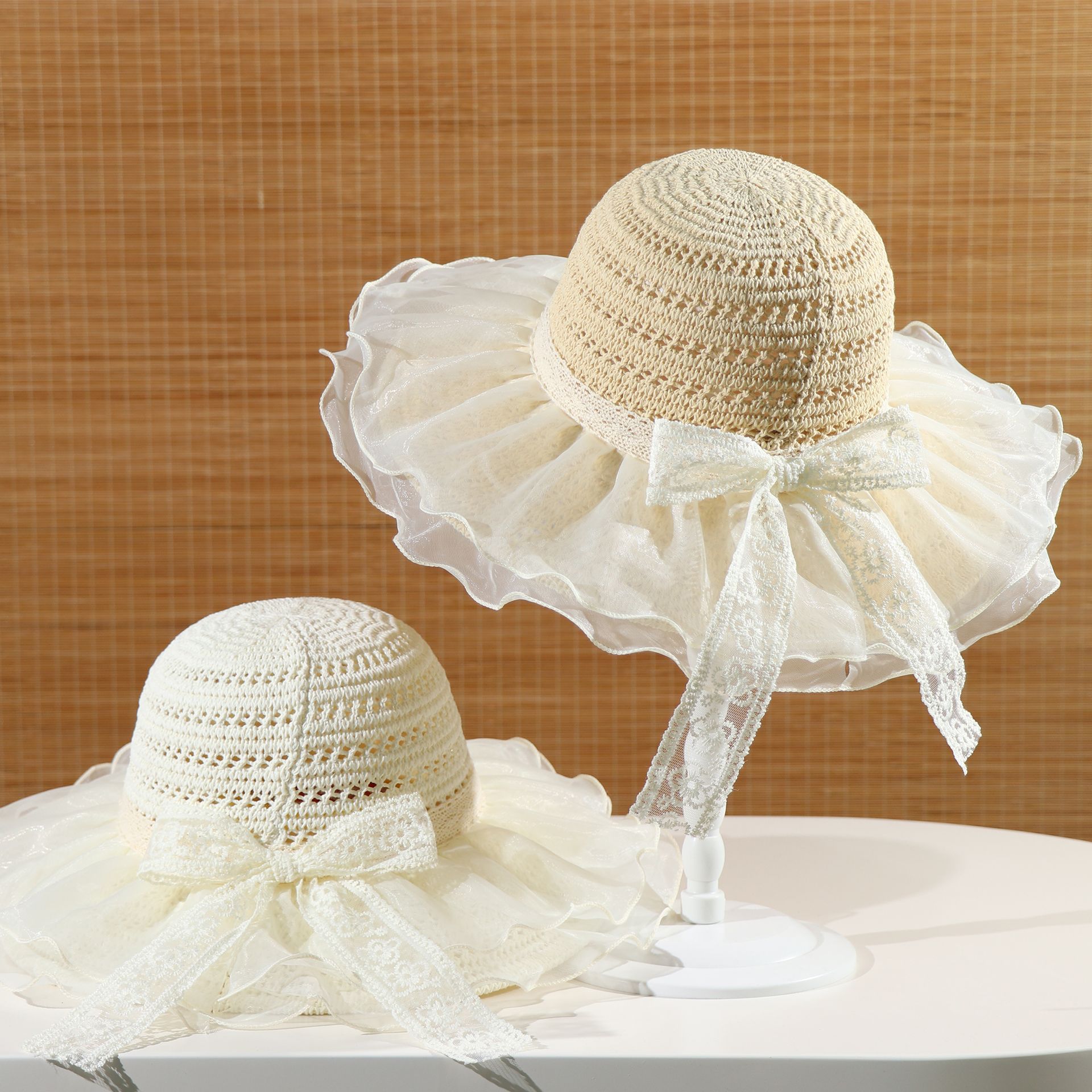 卸売新しい女性用盆地帽子夏のレースの大きなつば海辺の顔を覆うビーチ日焼け止め漁師の帽子蝶結び日よけ帽子