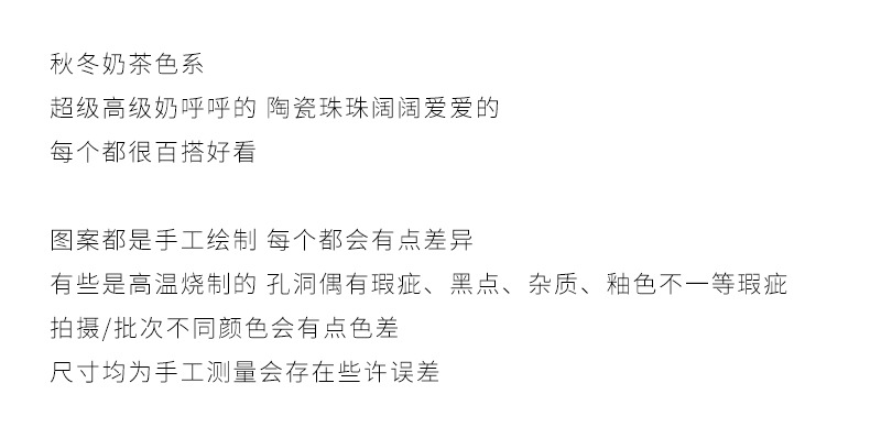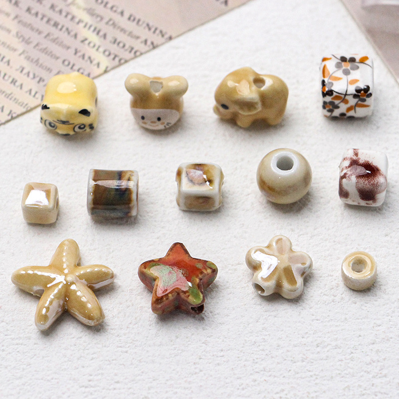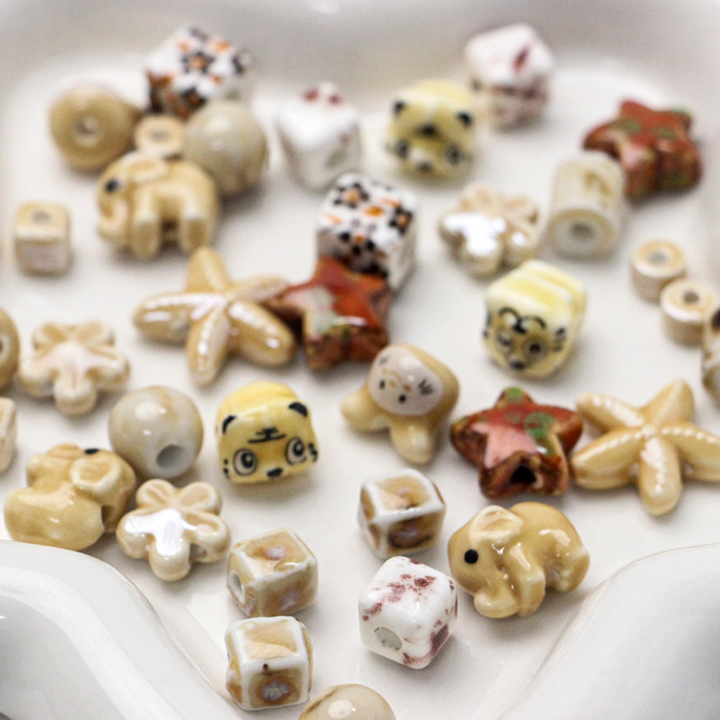 【ミルク茶色】秋系陶磁器小虎小象DIY手作りビーズブレスレットアクセサリー