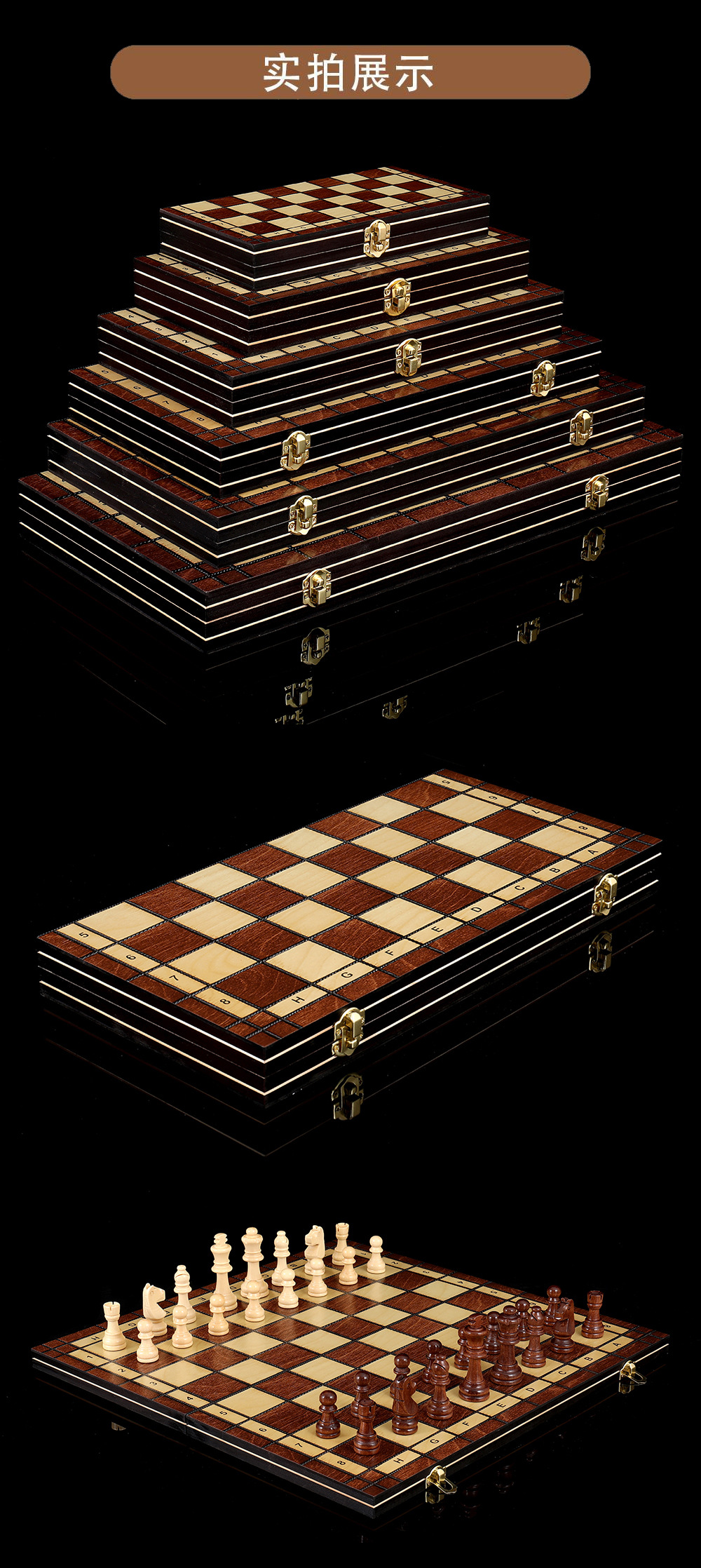 新款跨境国际象棋松木质可折叠含双后专业级棋牌桌游玩具厂家