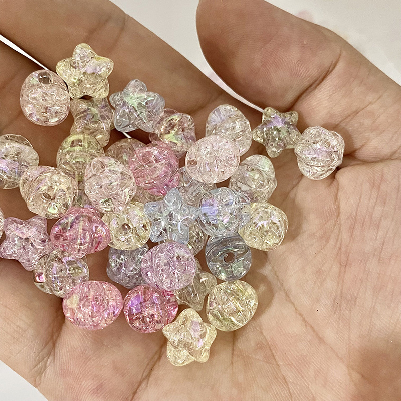 电镀幻彩小桃心亚克力小爱心爆裂小星星DIY手工制作手链隔珠材料