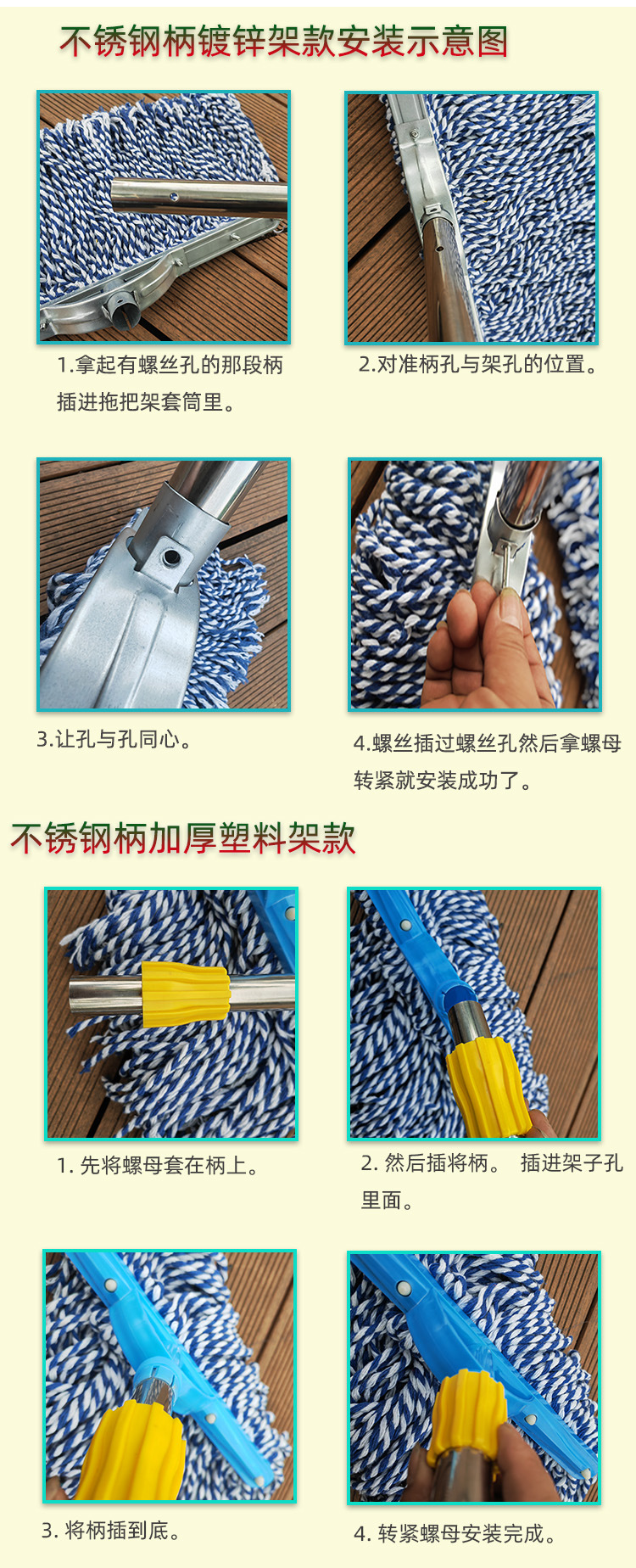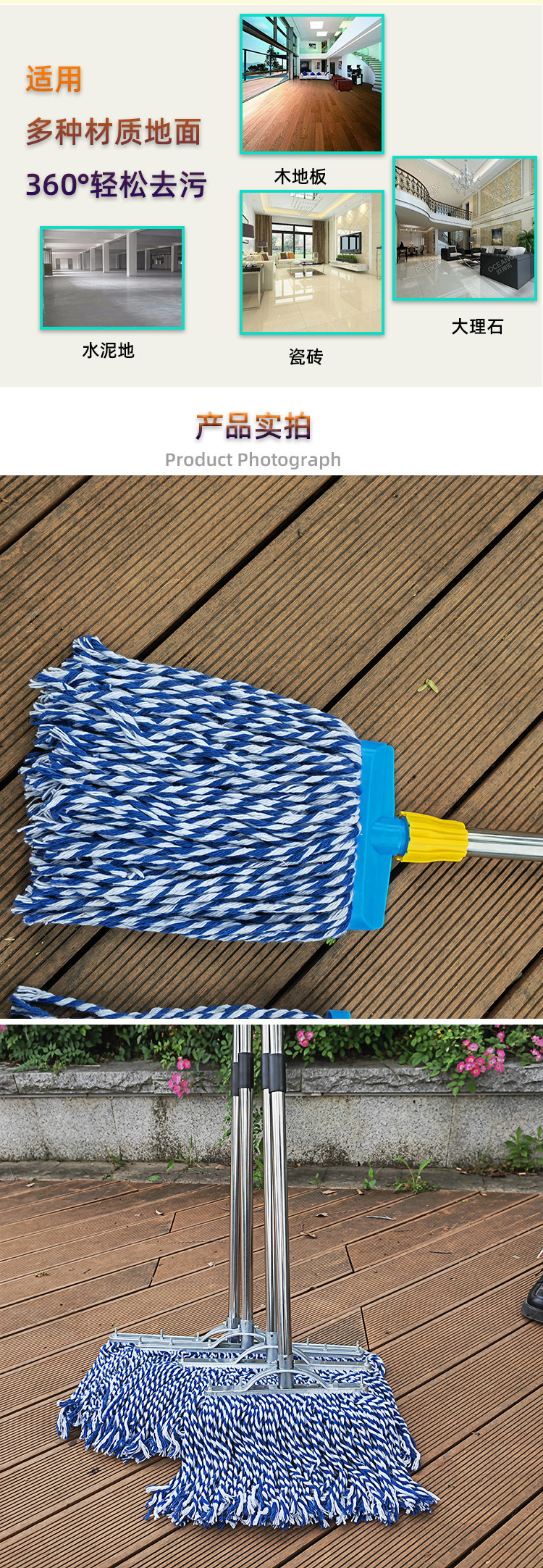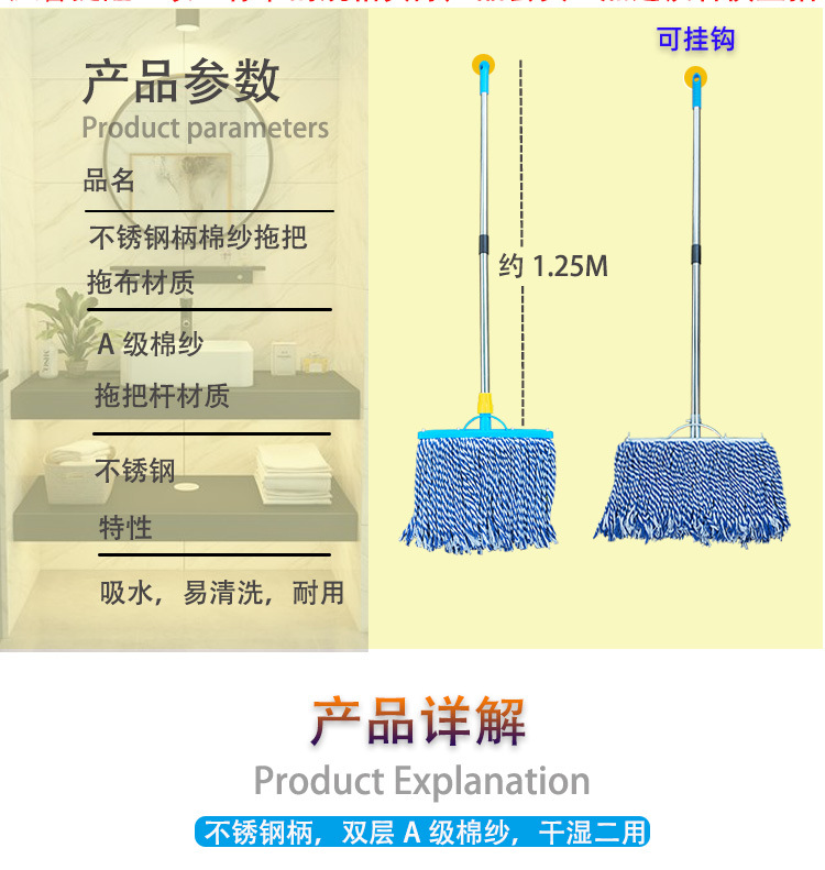Jiazhenxing ステンレス綿糸昔ながらのモップ商業昔ながらの普通の家庭用モップ吸水性家庭用モッププロパティ