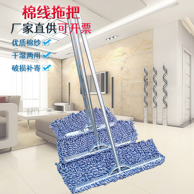 工場卸売りの大型綿糸モップ鉄棒平板モップ布塵押し吸水古い家庭用不動産学校のモップ