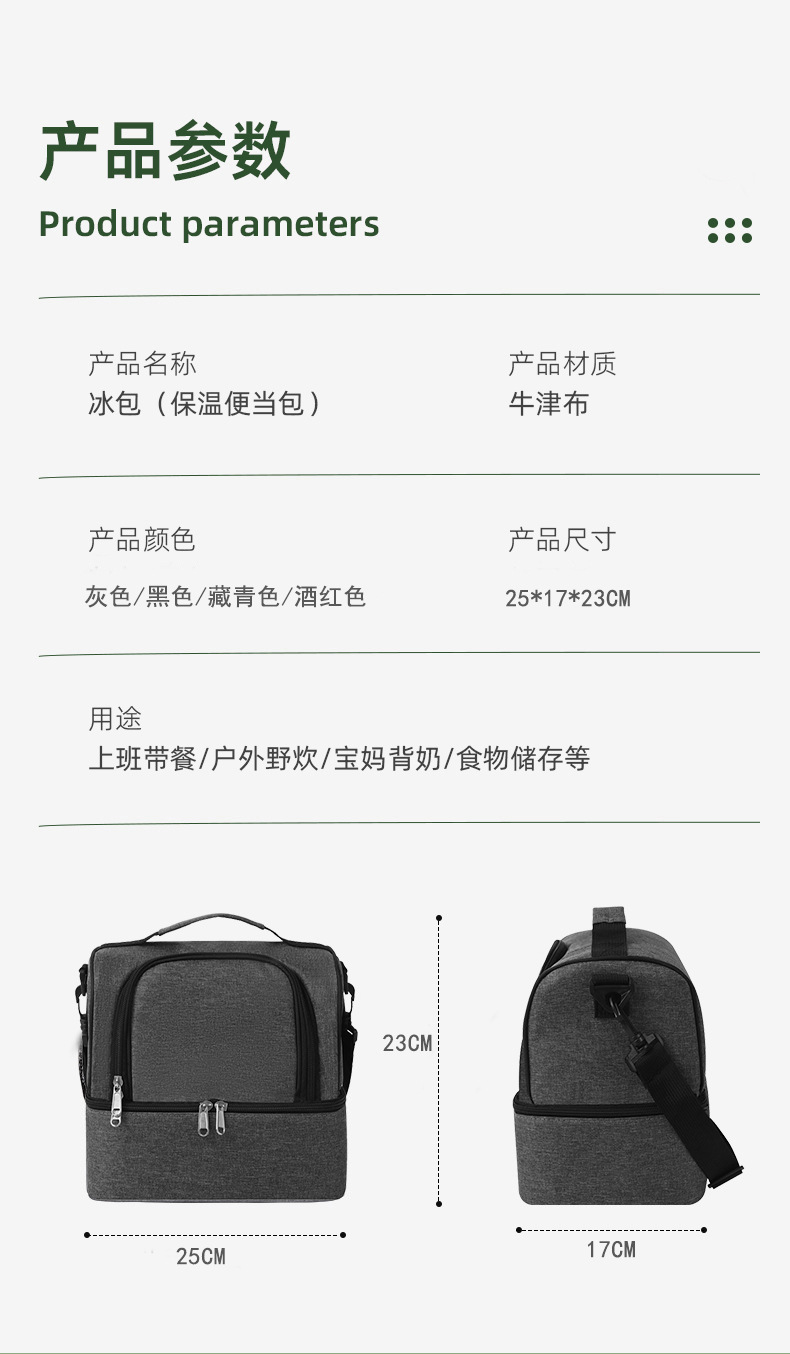 跨境双层午餐包单肩可斜跨冰包上班族通勤餐包户外野餐包保温包