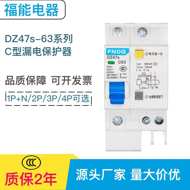 福能DZ40漏電保護器2Pブレーカー32A、2ポジション63A漏電保護、電気漏れ防止