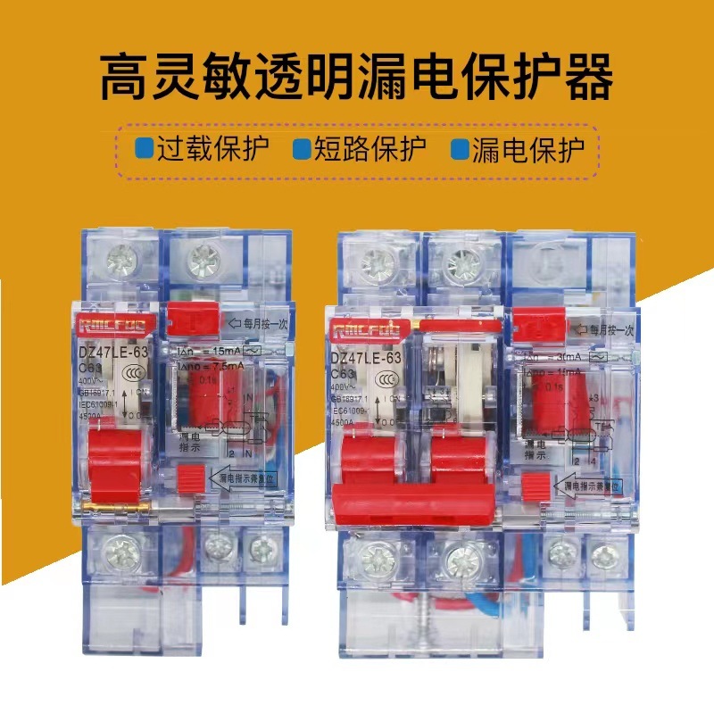 透明15mA漏電防止保護装置2P漏電遮断器380V三相サーキットブレーカーDZ47LE空開