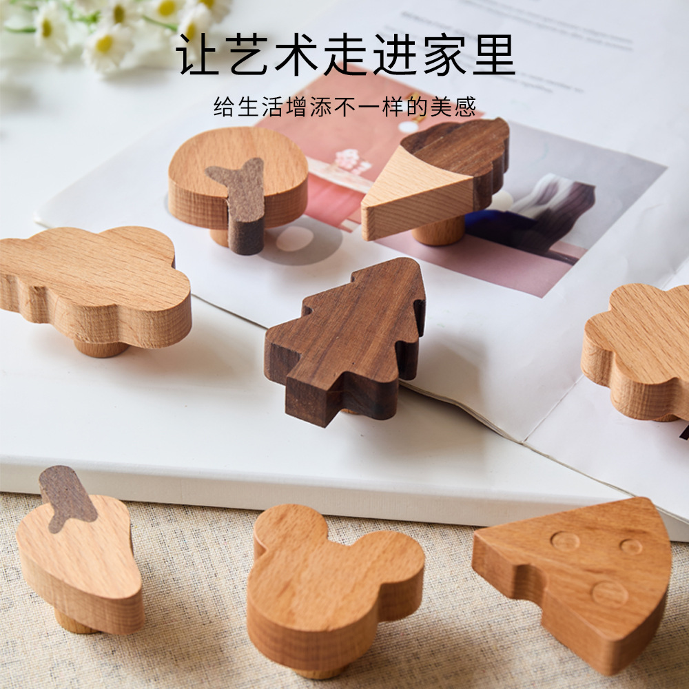 スポット漫画動物ワードローブキャビネットドアハンドル無垢材ハンドルブナ引き出しキャビネットキャビネットドアハンドル