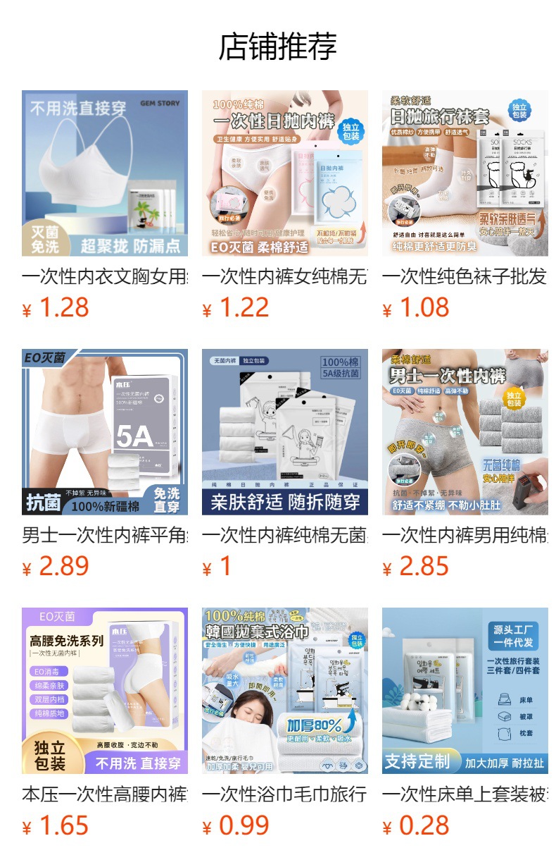 使い捨て下着、携帯用、男女兼用、純綿、日替わり、妊婦・産後女性用、旅行用品、卸売、軽量