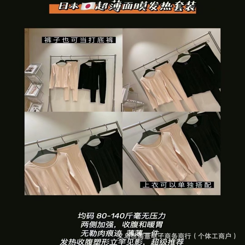 日本超薄面膜发热套装塑形自发热弹力紧身保暖内衣套装女秋衣秋裤