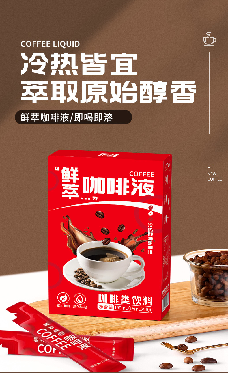 フレッシュコーヒー液、水出しコーヒー、濃縮クラシックブラックコーヒー液、フィットネスの相棒、スポーツ、学生、卸売、配送