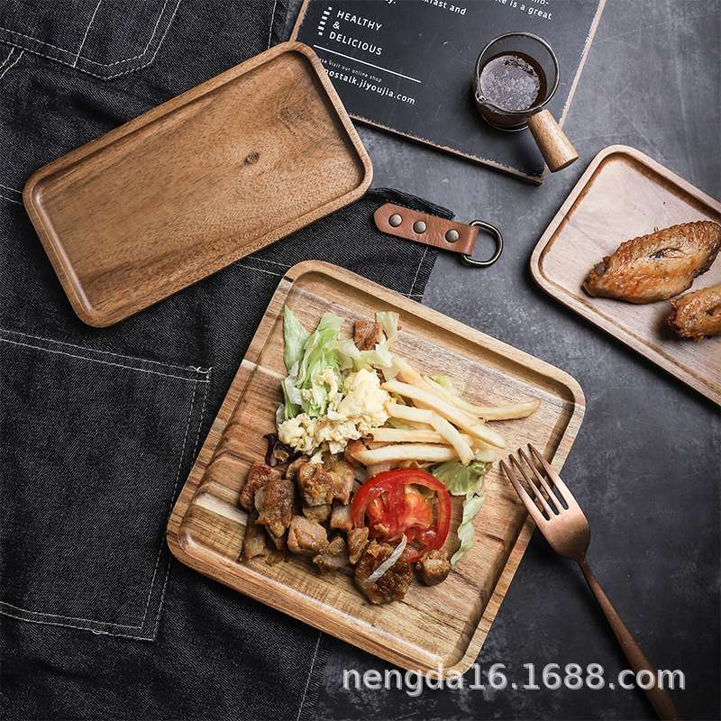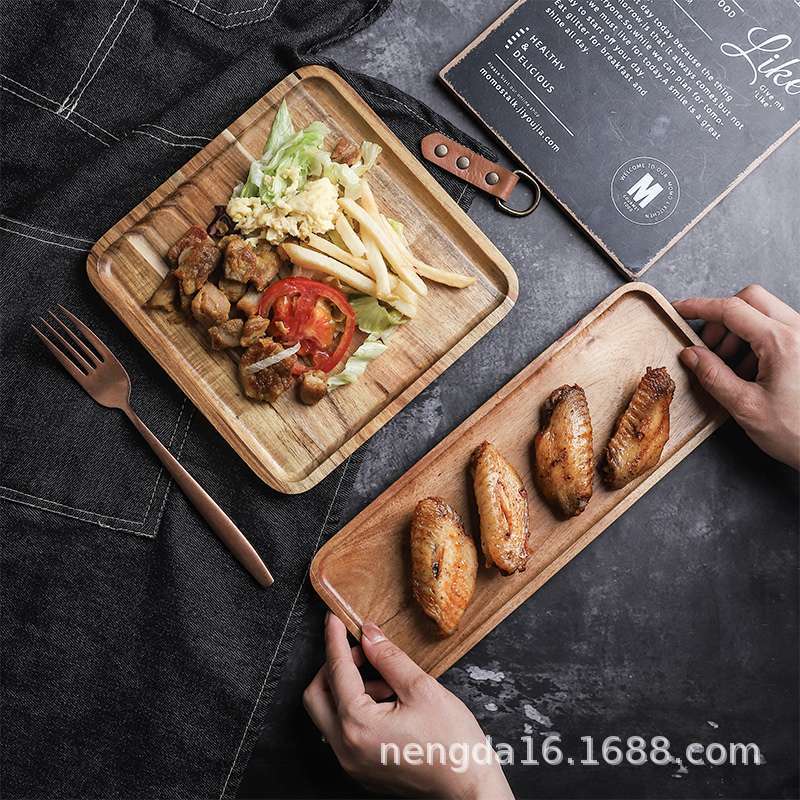 洋食皿木製皿日本式木製トレー角皿寿司皿デザート皿朝食木皿