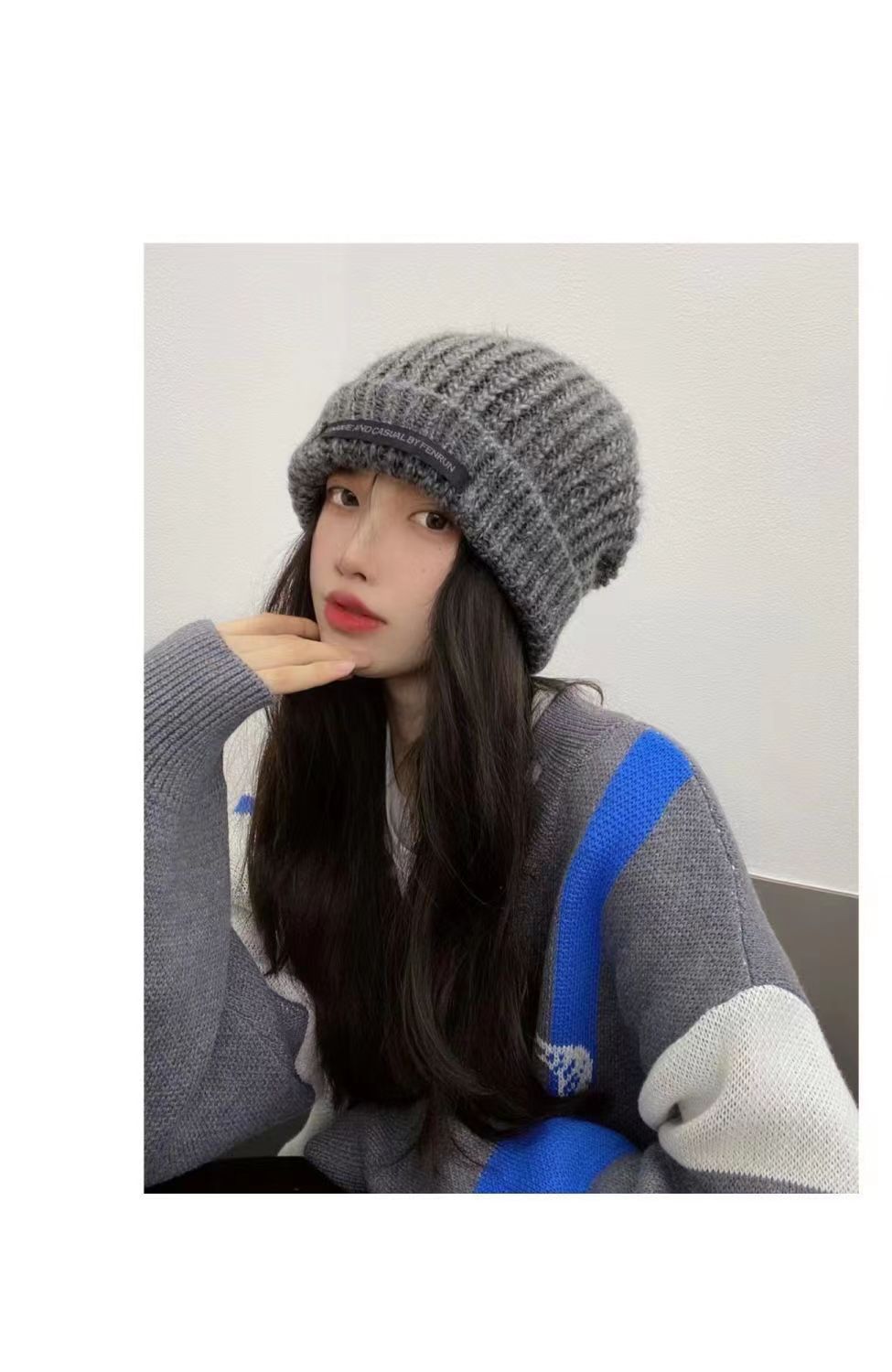 ウールの帽子の子供の秋冬の韓国版のファッションブランドのネットの赤い組み合わせのニットの帽子の学生は保温して顔の小さい太い針のゆったりしている帽子を現します。