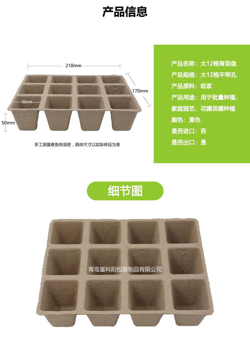 使い捨てパルプ育苗カップ育苗盤大12格パルプ育苗盤園芸花卉種子発芽保護根