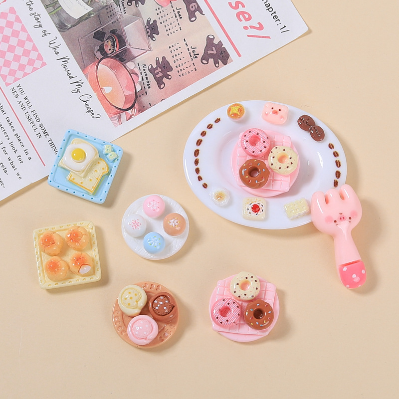樹脂の部品の卸売りクリームのヘアピンの手作りのdiyのアクセサリの穴の靴のボタンの材料の漫画の食事の皿