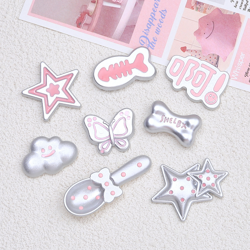 樹脂の部品の卸売りの手作りのdiyの穴の靴はクリームのゴムのヘアピンのアクセサリーの材料の漫画の銀色の蝶を掛けます。