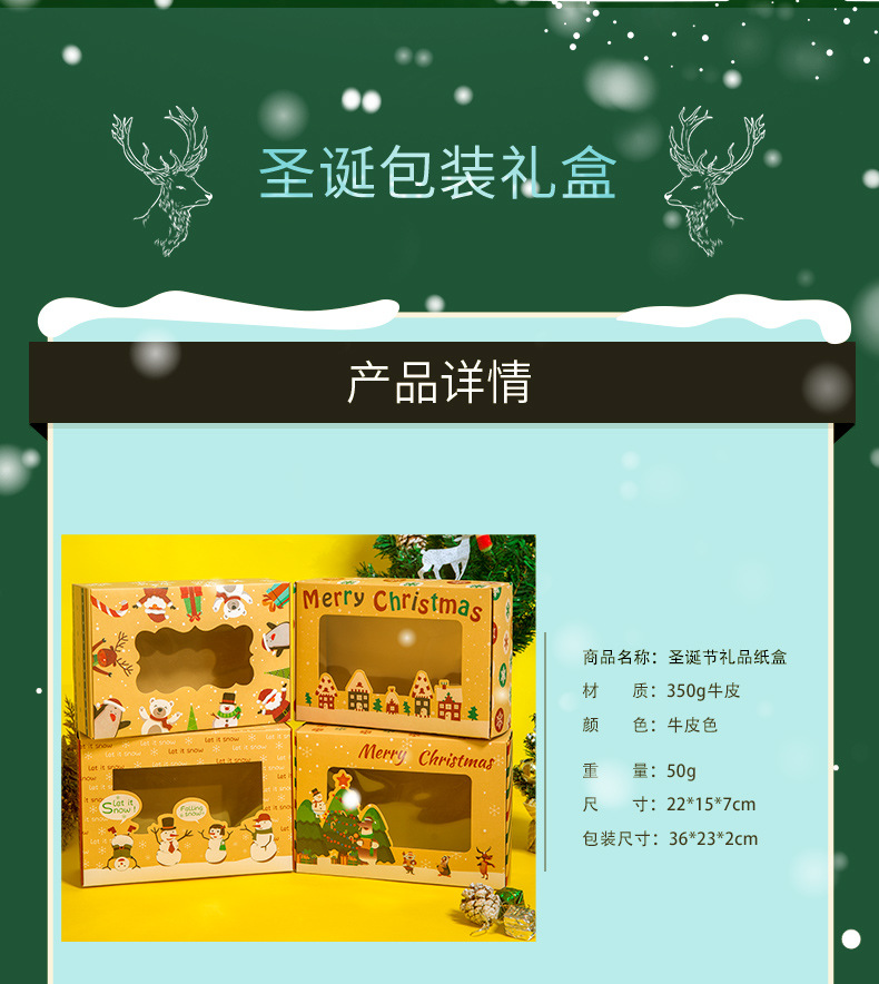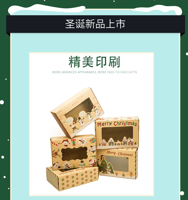 2023年新型アマゾン対外貿易クリスマスクッキークラフト紙ギフトボックス透明クッキーボックス現物卸売り
