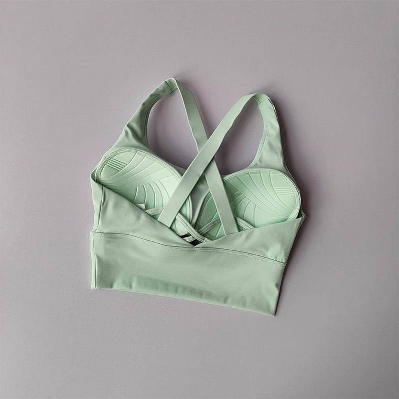 挂脖瑜伽背心带胸垫收副乳高强度减震运动内衣健身吊带瑜伽服褶皱