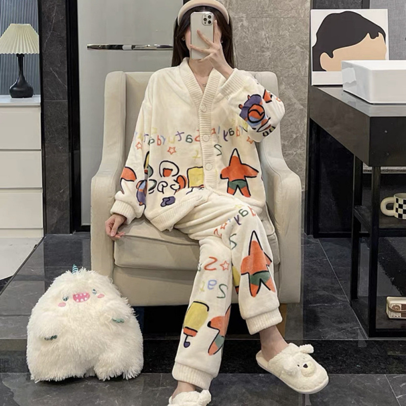 秋冬新作派大星パジャマセットルームウェア女性の甘くて可愛いカーディガン長袖長ズボン二点セット女性