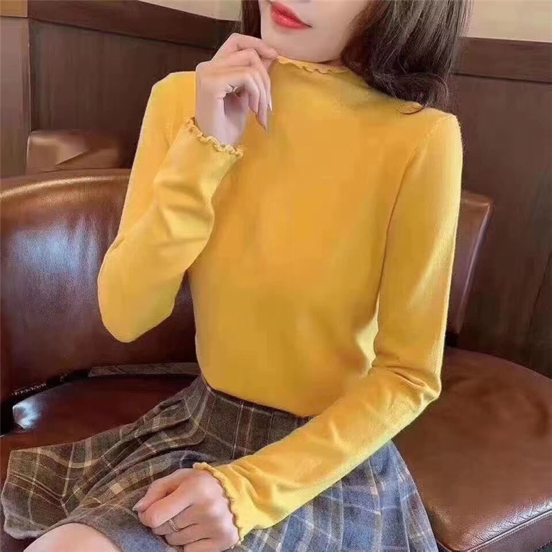 秋に起爆した徳絨女の底のシャツの新型の木の耳元の半分の高い襟の保温はやせている洋風の長袖の無痕の秋の服を現します。