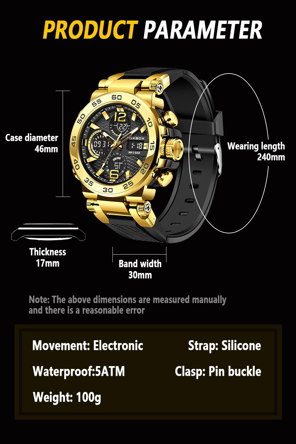 Foxbox/利格クロスボーダー専用男性石英電子ダブルディスプレイ腕時計多機能防水夜光腕時計