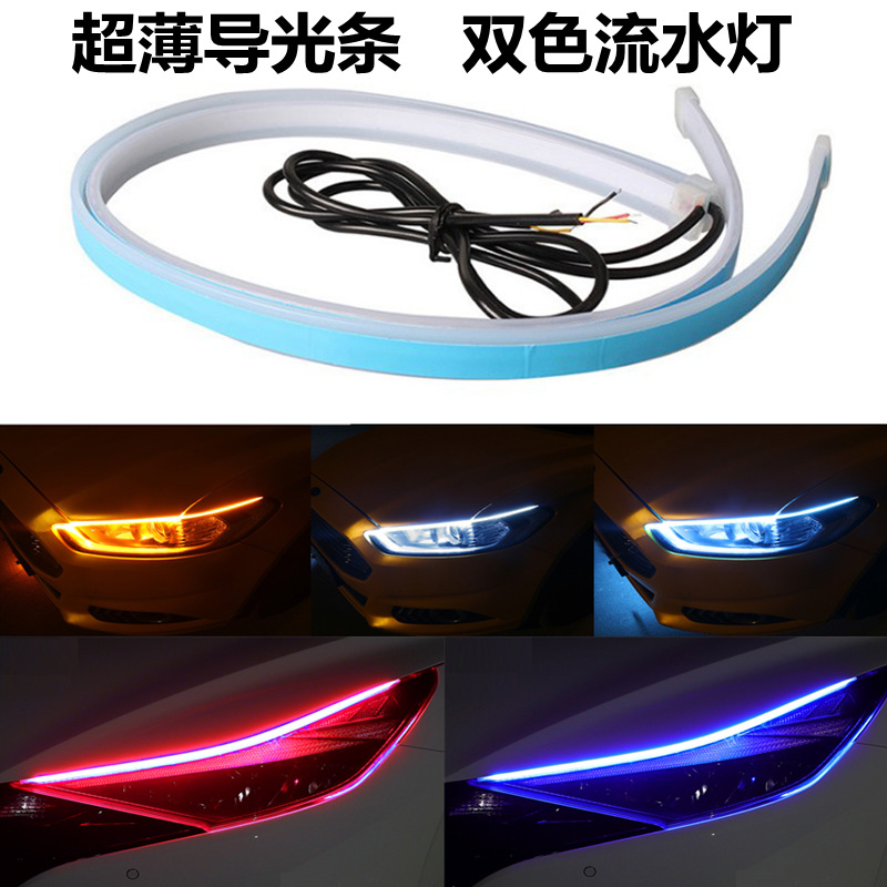 自動車ledデイライト導光バー30 45 60cmスキャン2色白黄ターンライトストリーマ装飾灯
