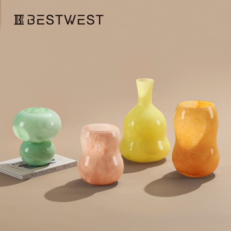 Best west新中国式大理石ガラス花瓶置物家庭見本間デザイナー高級花器