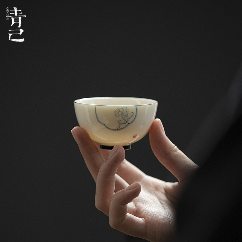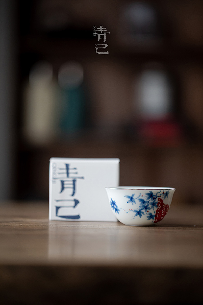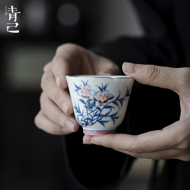 青己手描き青花主人杯カンフーティーカップ陶磁器家庭用シングルカップ