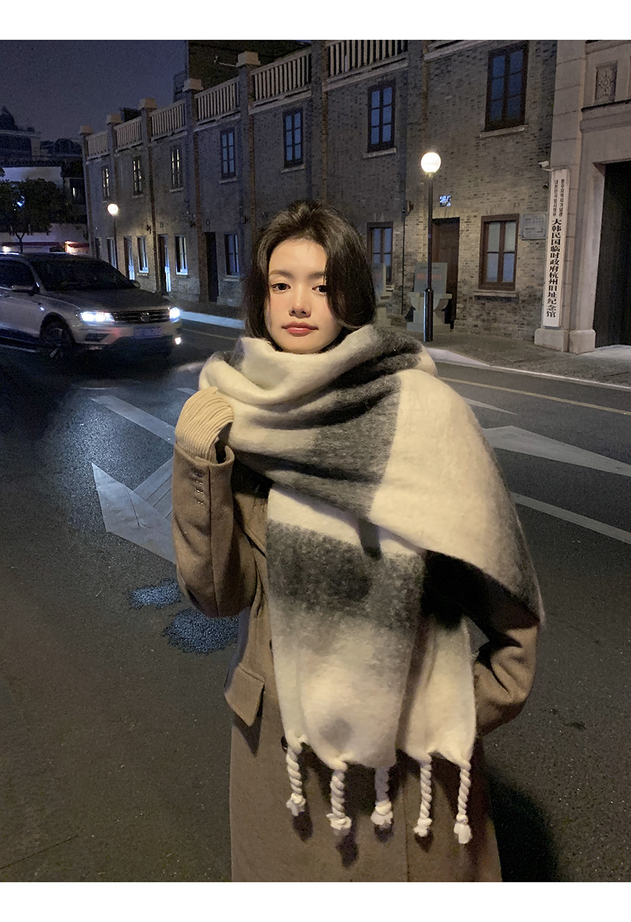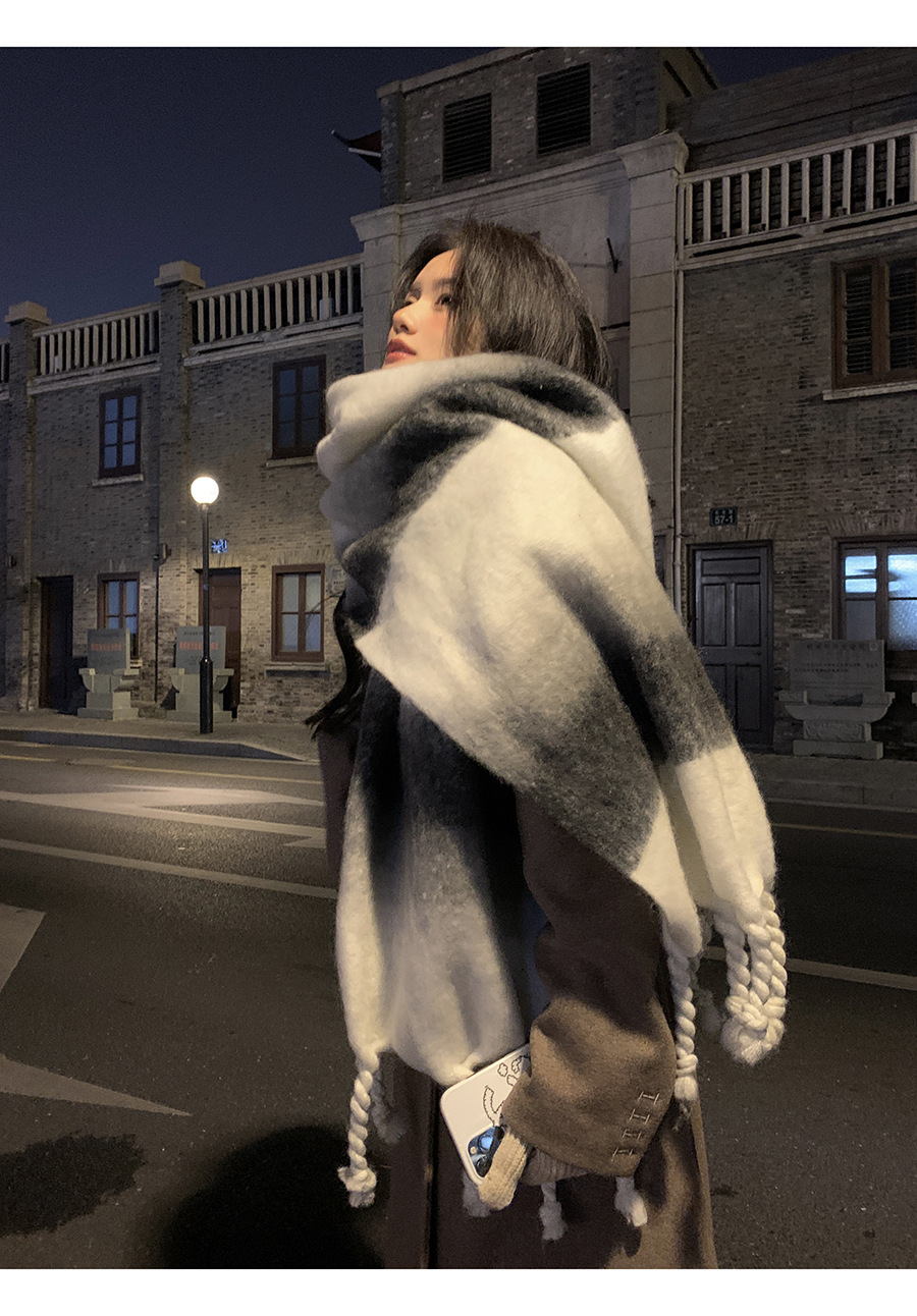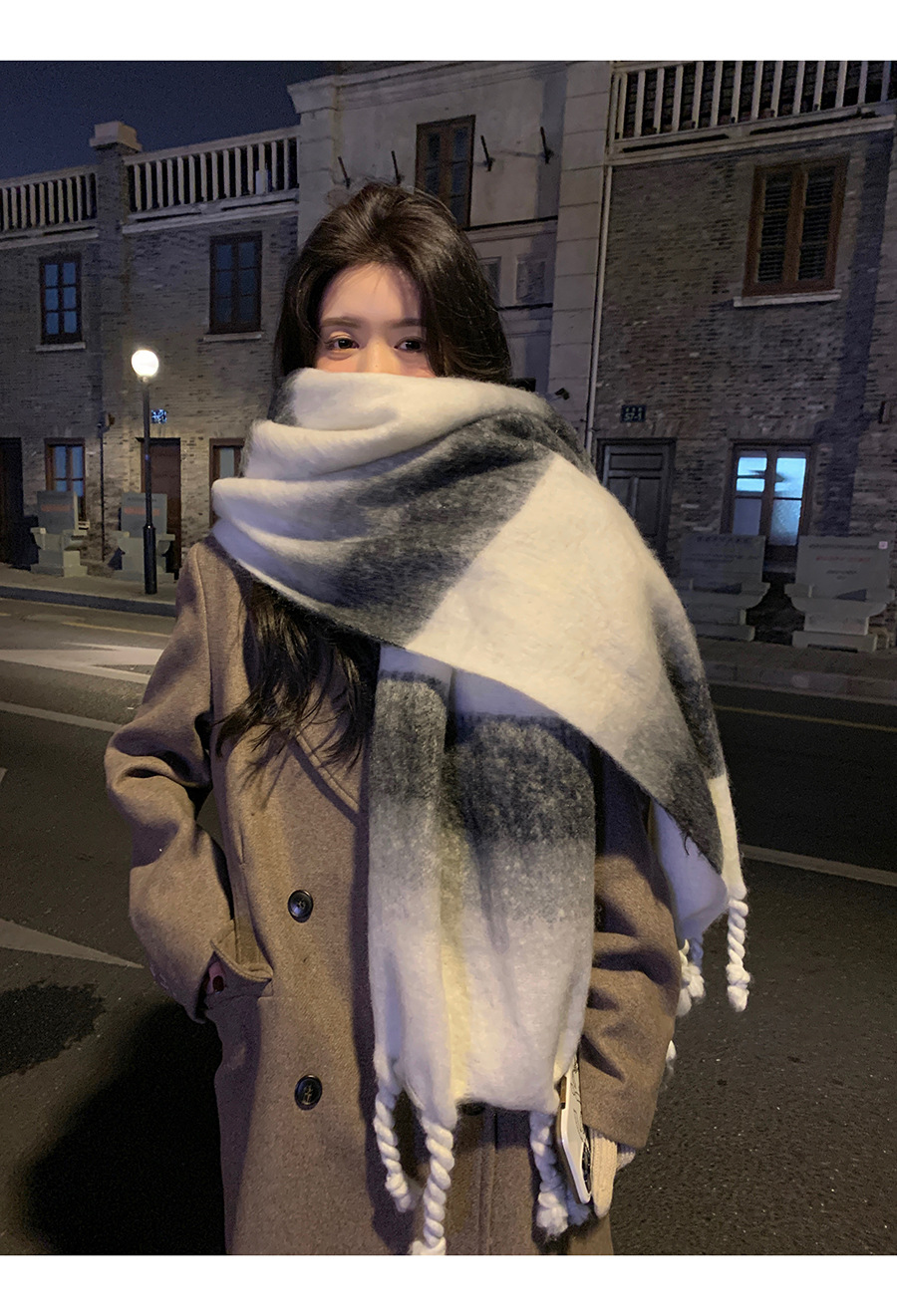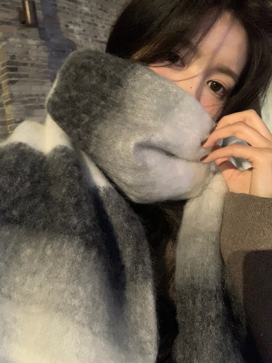 灰色の白いグラデーションの色合わせの馬海毛マフラー女性は冬に保温マフラーを厚くしてカシミヤのマントの卸売りに似せます。