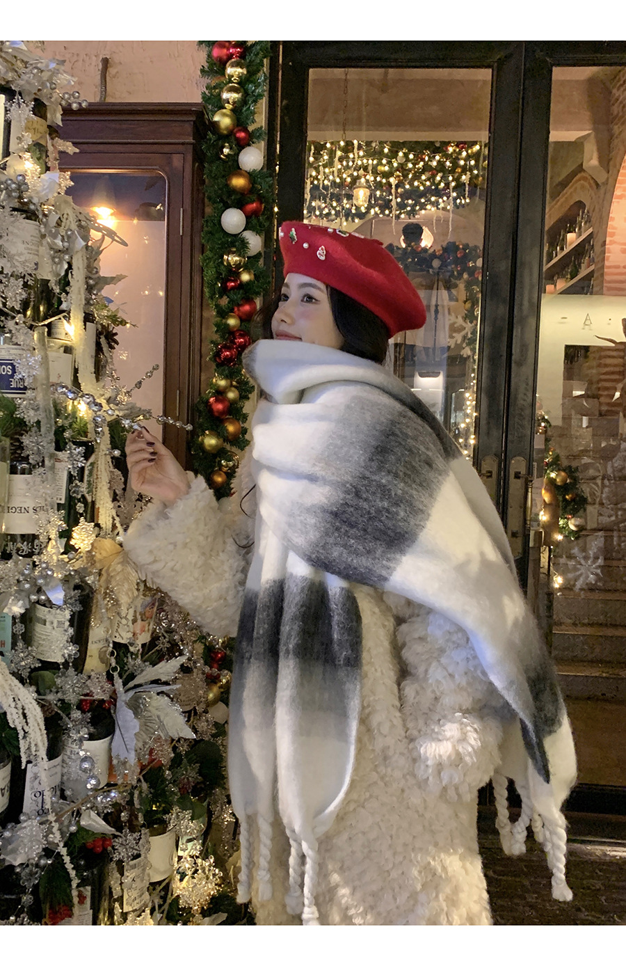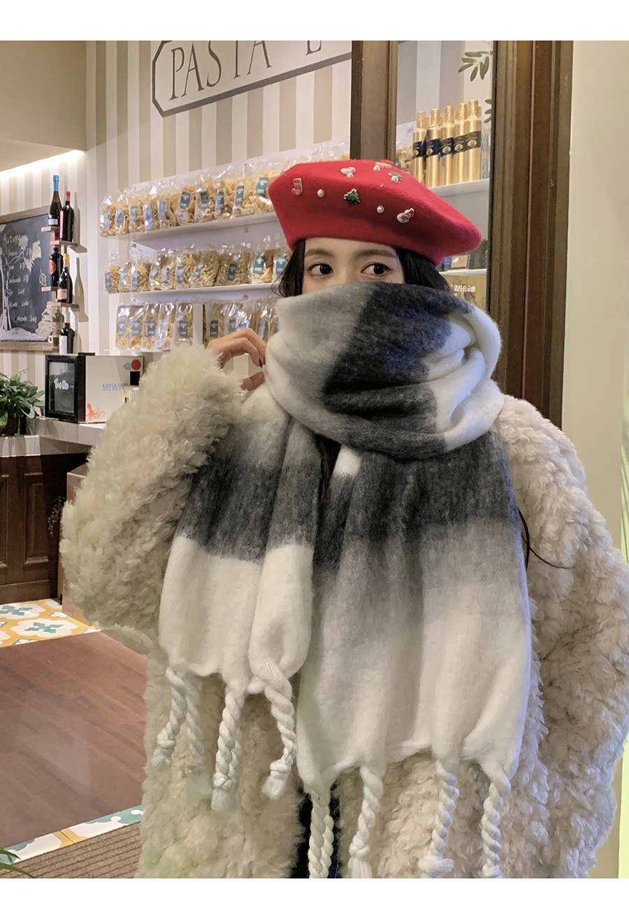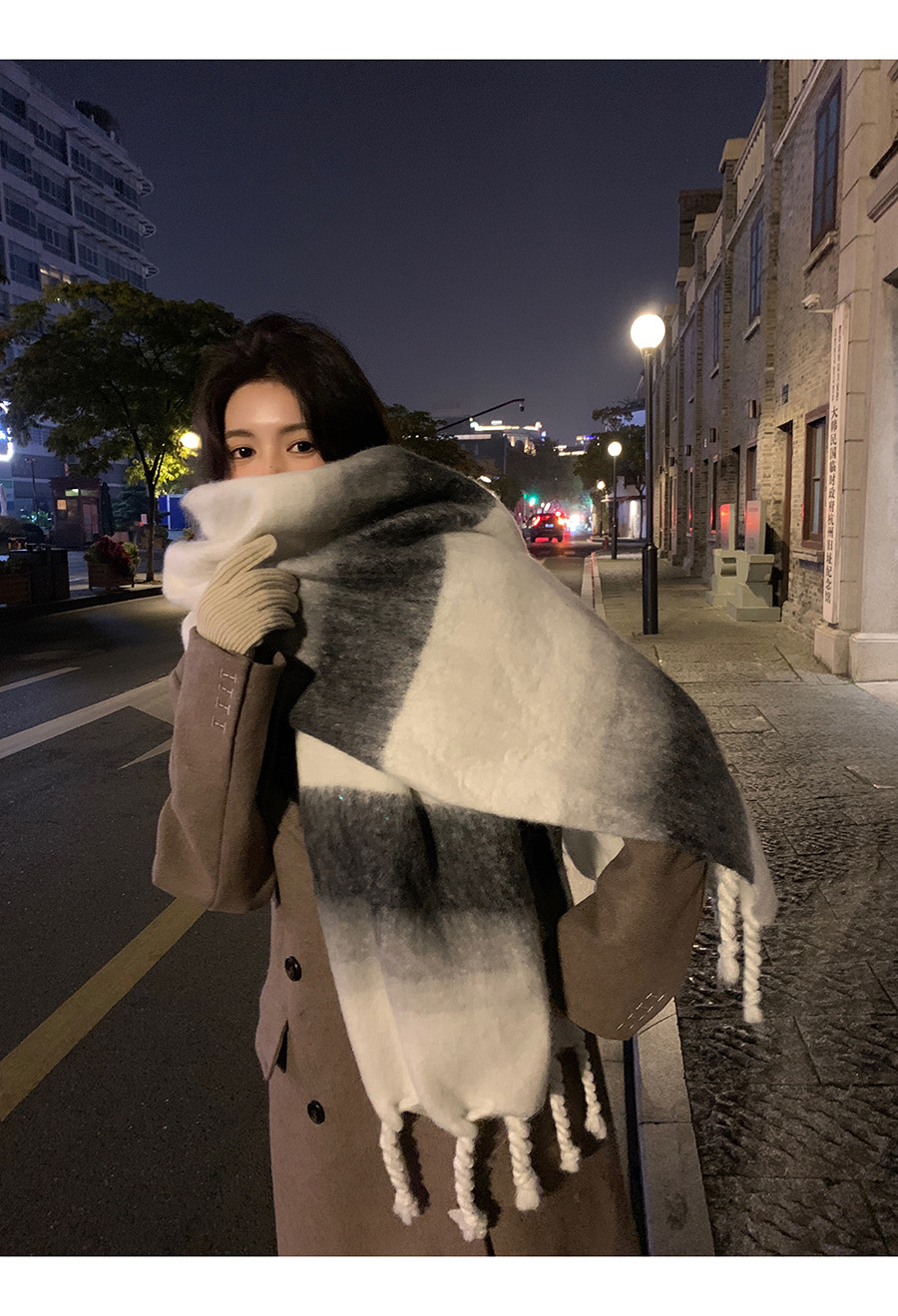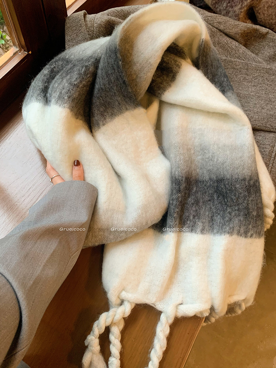 灰色の白いグラデーションの色合わせの馬海毛マフラー女性は冬に保温マフラーを厚くしてカシミヤのマントの卸売りに似せます。