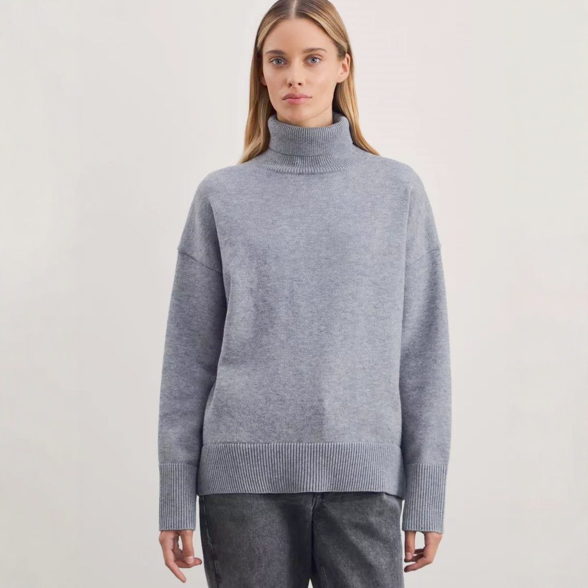 2025年トレンド 欧米風 秋冬 無地 タートルネック ニット ゆったり 着痩せ効果 多彩に合わせられる ニットセーター レディース