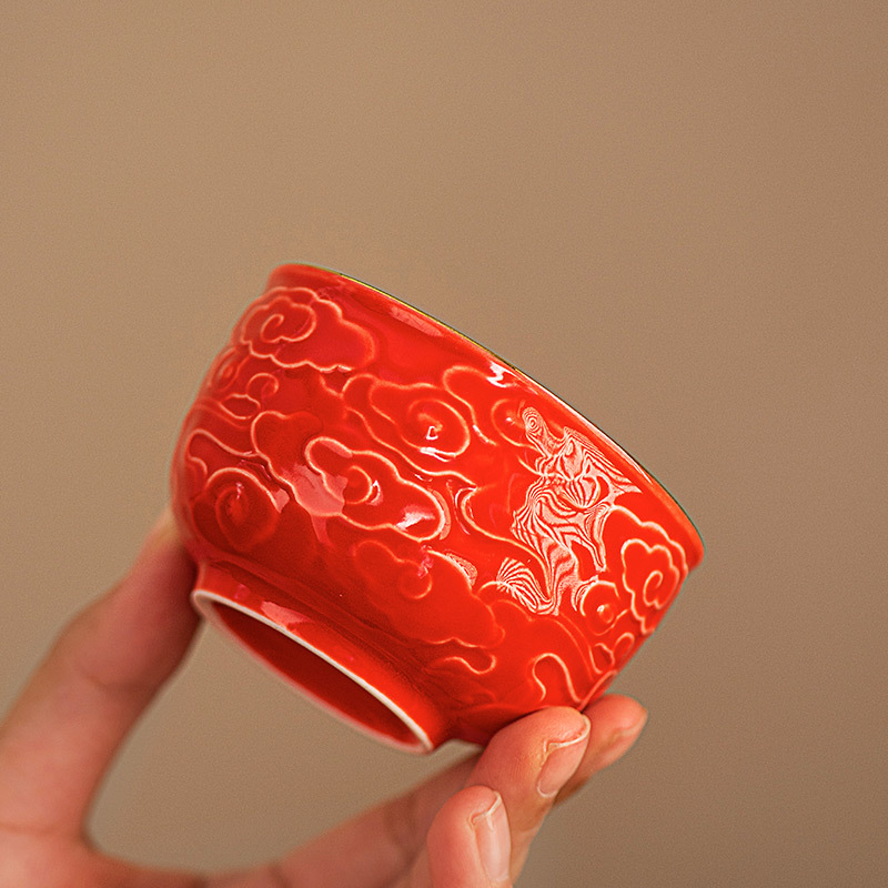 浮き彫り祥雲主人杯シングルカップ手作り陶磁器カップ家庭用大型品茗杯個人専用工夫茶器