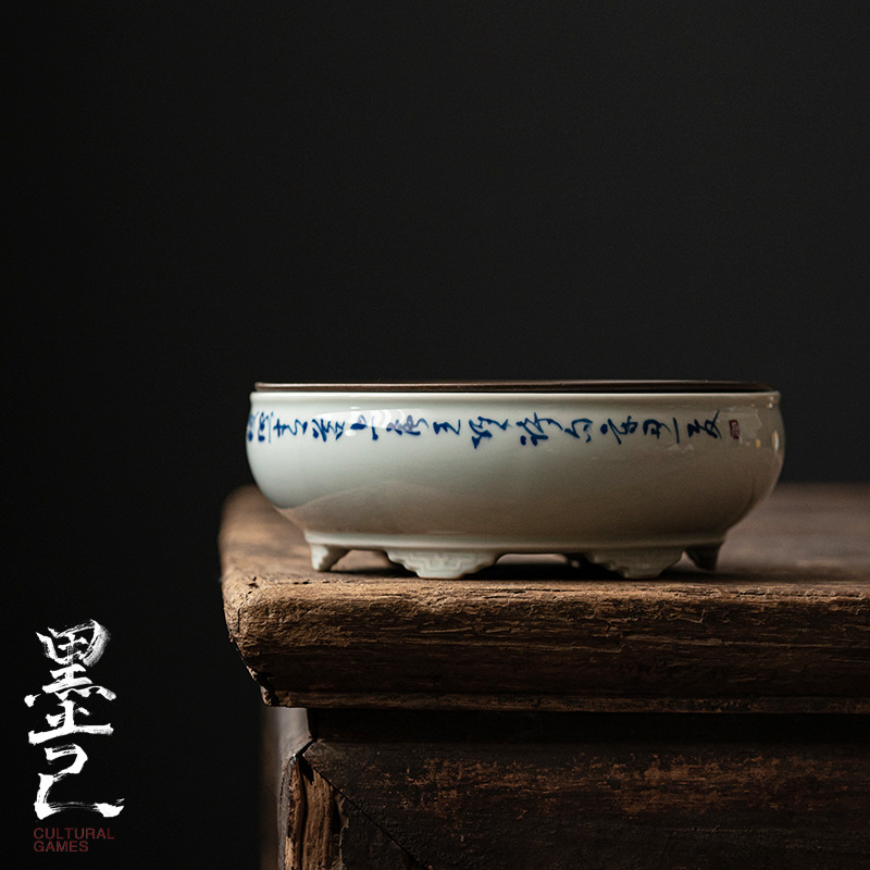 墨己古青は古壺に似せて、手書きの青と花の釉薬を受けて、古陶磁器の乾燥した泡の皿を作ります。
