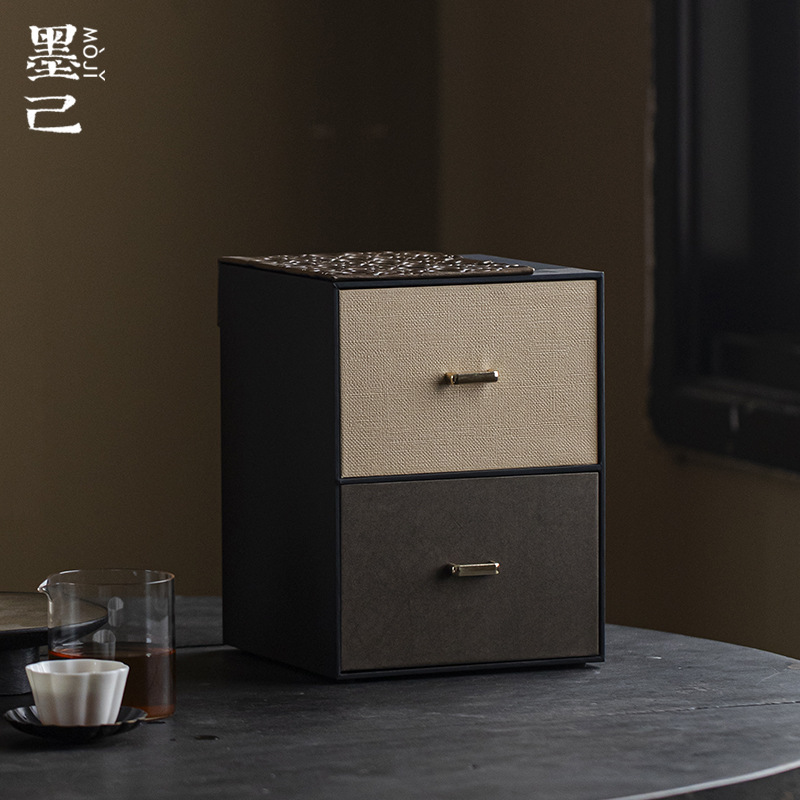 墨己祥雲紋二重収納ボックス茶道部品雑物茶席収納ボックス茶室置物鉛板ギフトボックス