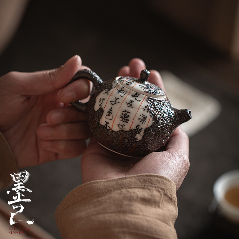 墨己陳仁慧先生の手作り柴焼茶道具心経残巻陶磁器手執壺文人小品壺