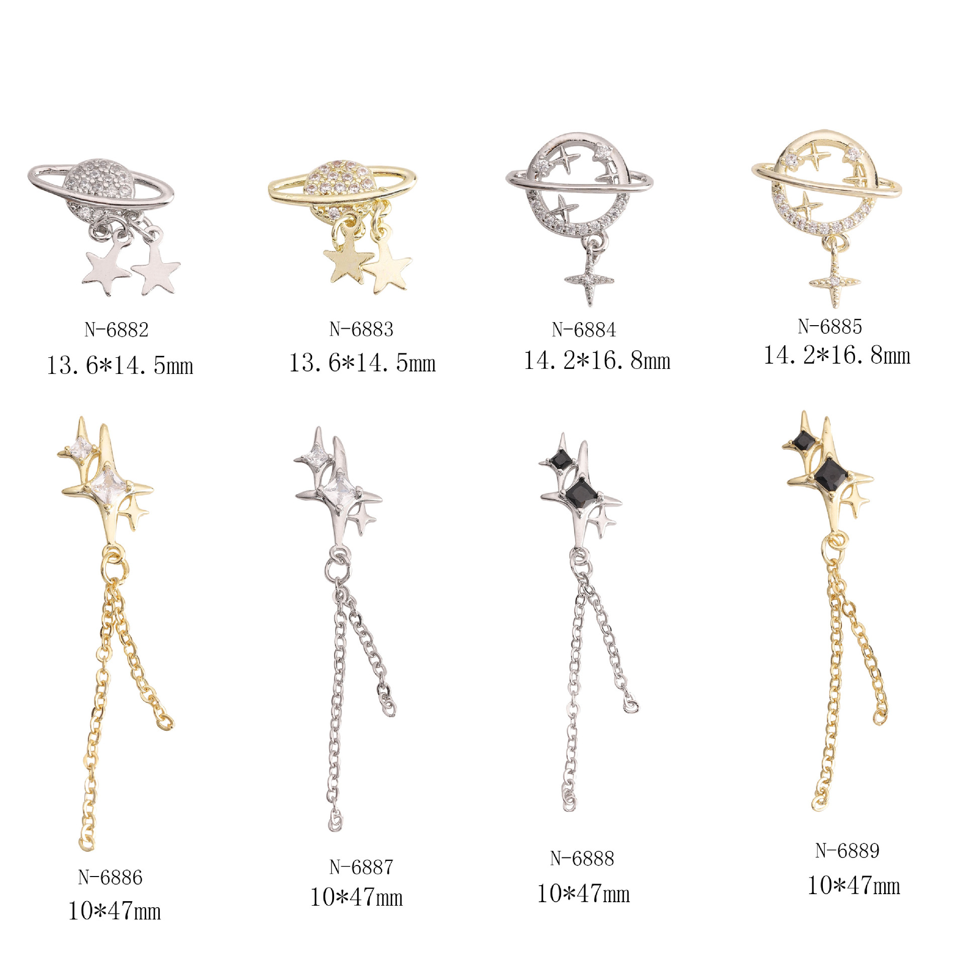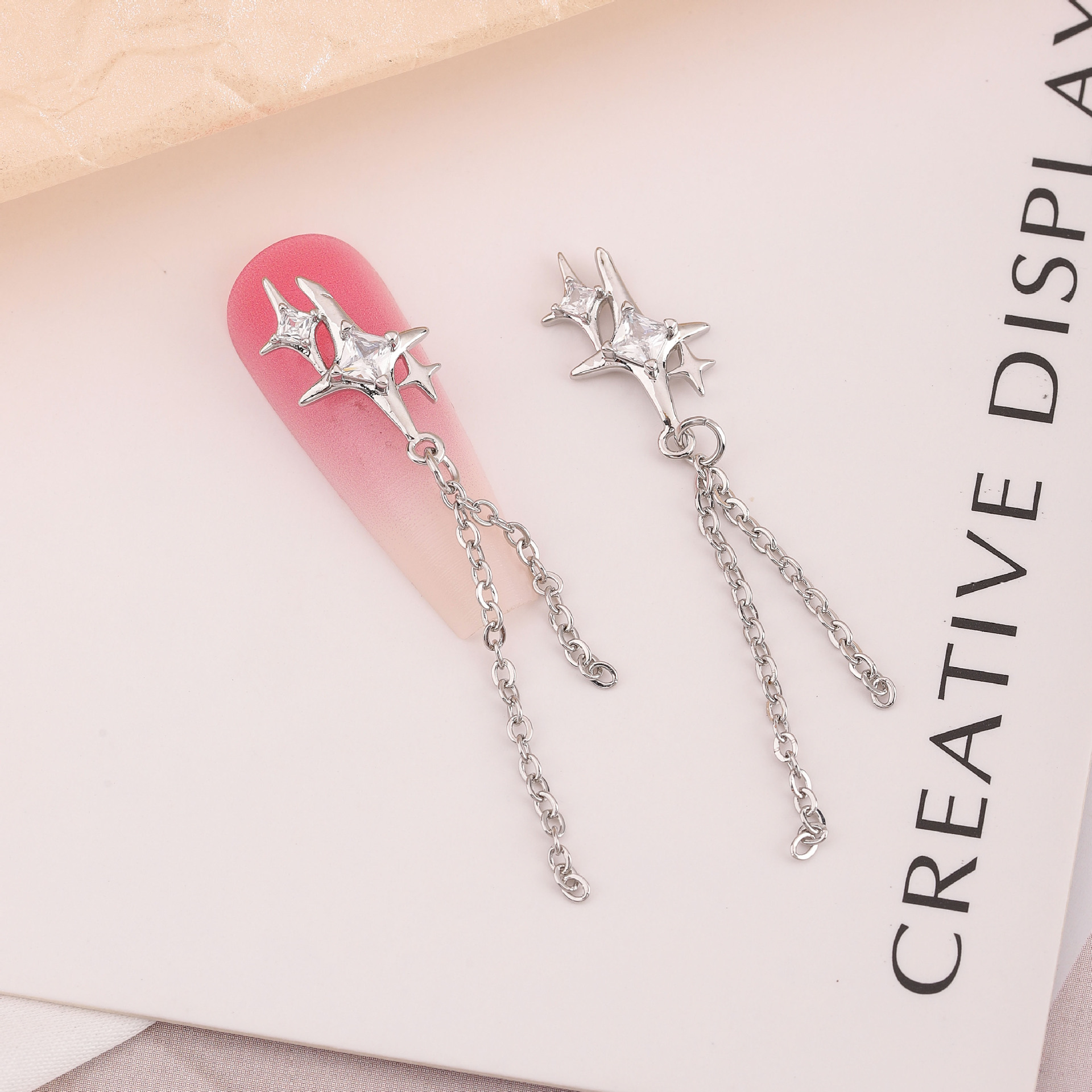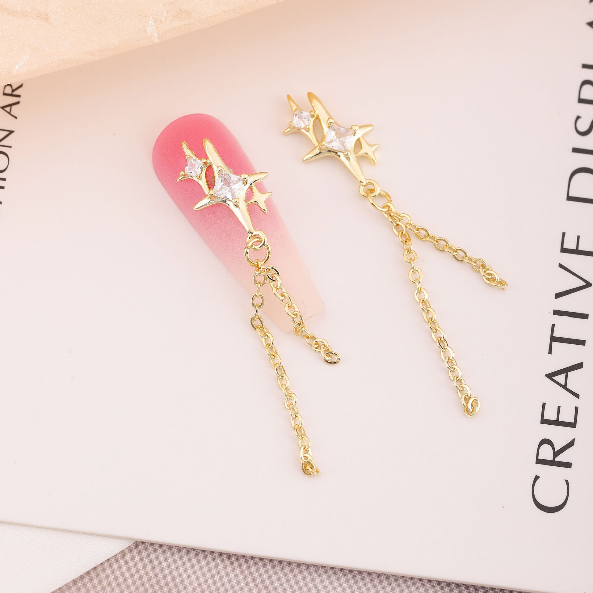 ネットの赤い新型のネイルの星の芒流蘇のアクセサリのチェーンの軽くて豪華な立体の超フラッシュのジルコンの星のペンダントの爪の装飾
