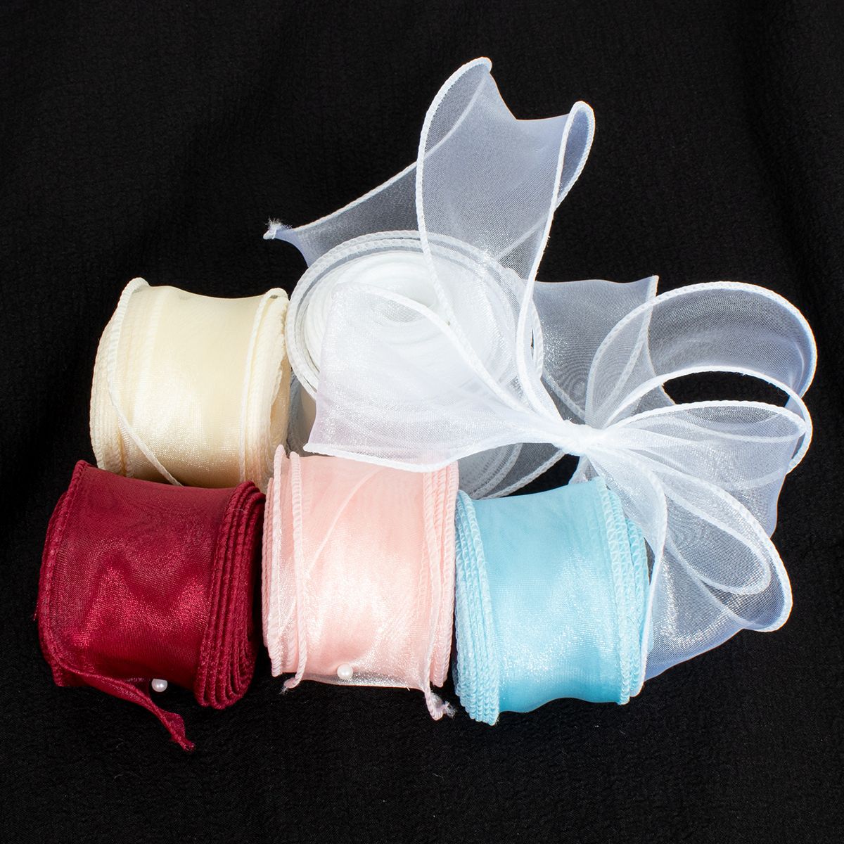 カラフルなフィッシュテールシルクのリボン、花の包装材、手作りDIY、パール装飾のリボン、蝶結びリボンアクセサリー