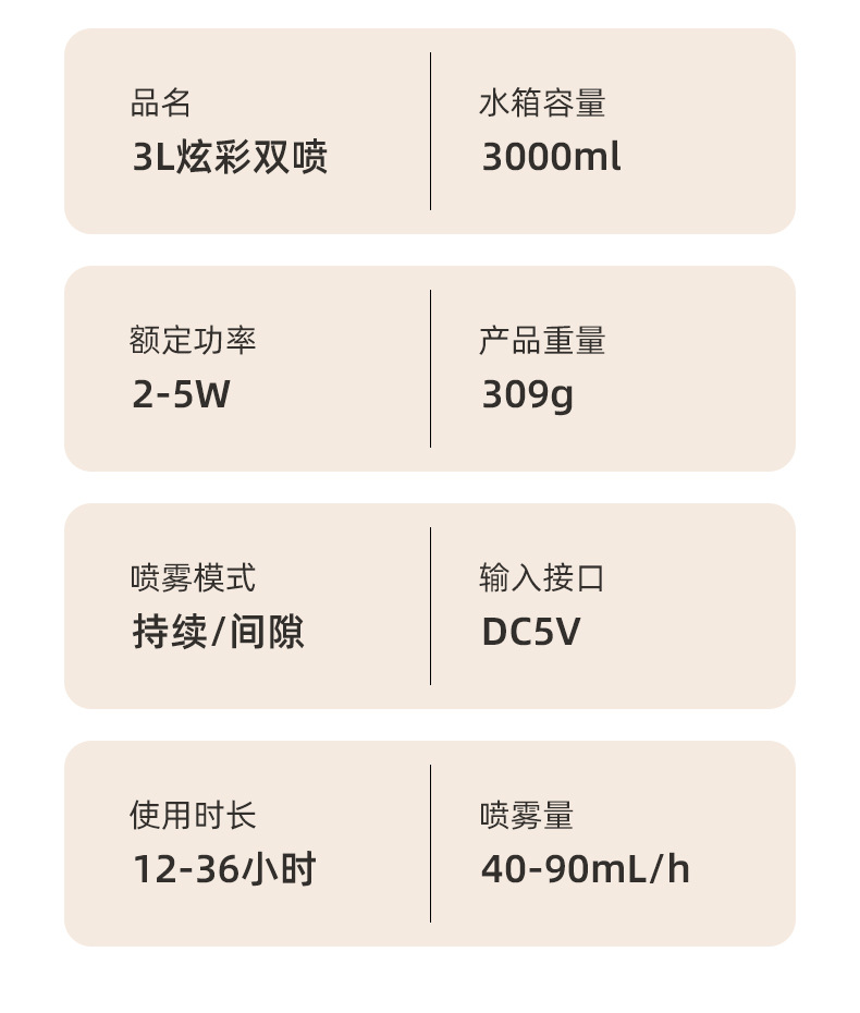 クロスボーダー3Lダブルスプレー加湿器usb大容量家庭用寝室オフィスデスクトップ静音カラフル加湿器