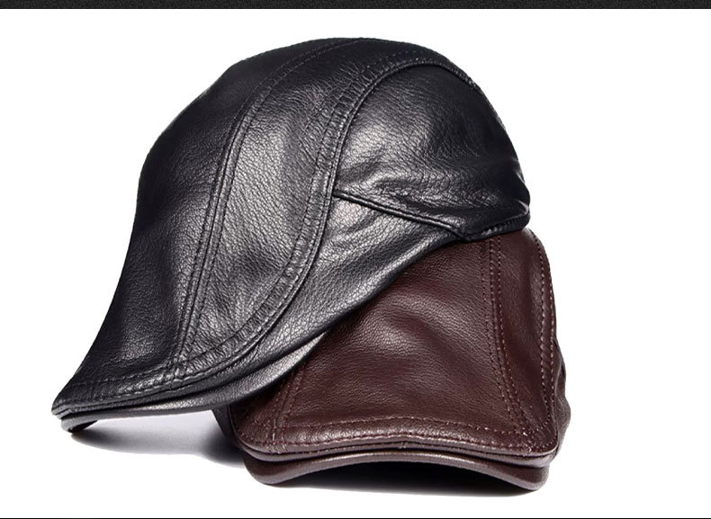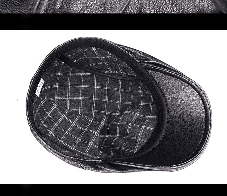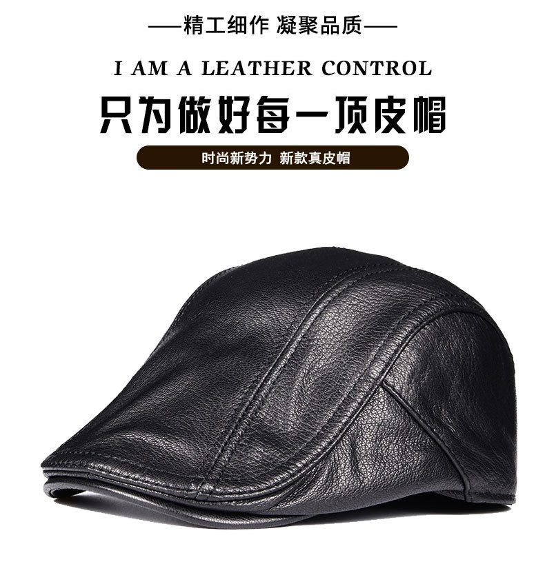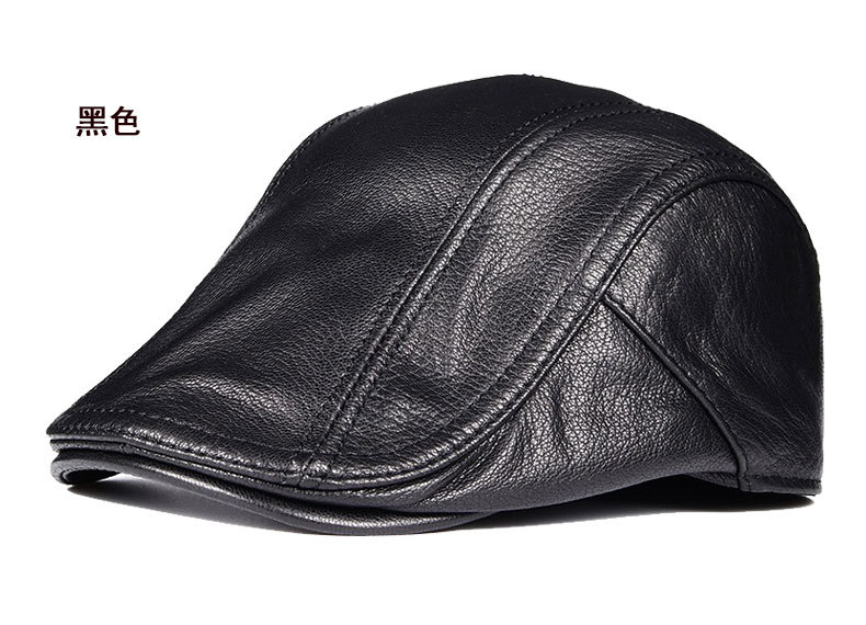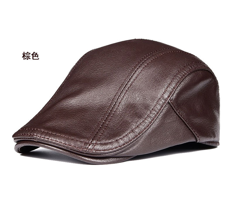 本革の帽子の男性の中高年の男性の帽子の頭の層の牛革のベレーの帽子の耳のアヒルの舌の帽子の秋の冬の前に帽子の潮に入ります。