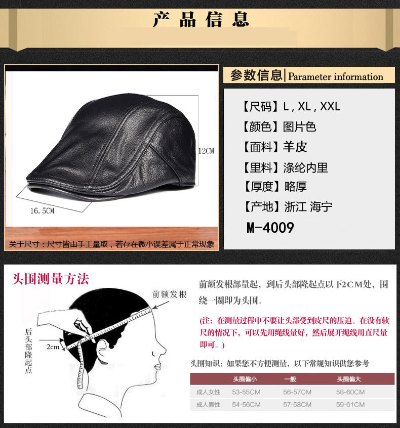 本革帽子羊皮野球鴨舌帽子ファッション中高年秋冬保温アウトドアレジャー平頂帽