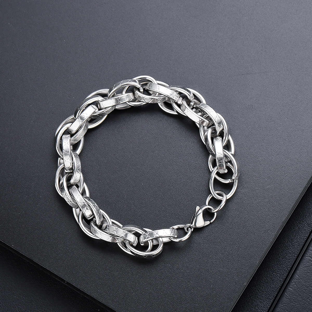 チタン鋼のブレスレットの男性は色を落とさないでレトロな個性のヒップホップデザインに合わせて、新しいアクセサリーの女性の高級感がシンプルです。