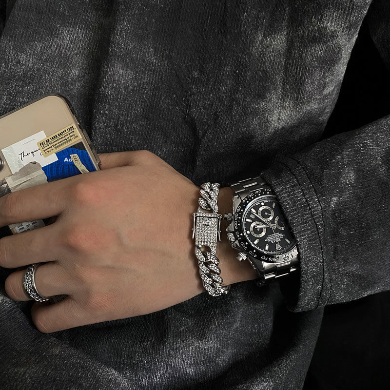 ブレスレットの男性の潮の高級な大衆の設計感のキューバの美風のトランポリンの冷たい風の男子学生の独身のタイプは簡単で夏です。