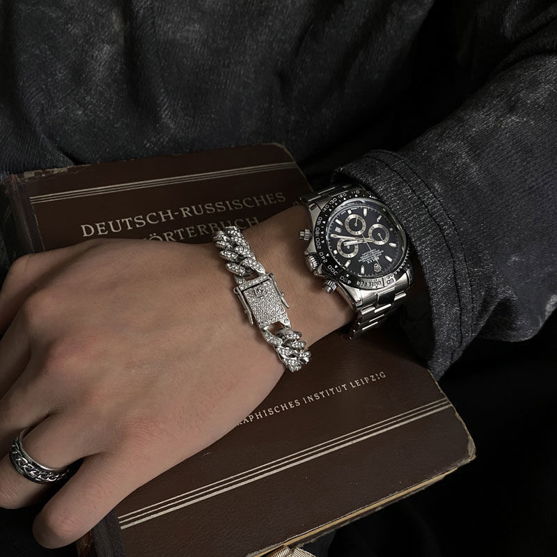 スクエアスキューバブレスレットメンズチタンスチール色落ちしないトレンド百合レトロ小衆ジュエリーレディース高級感アクセサリー