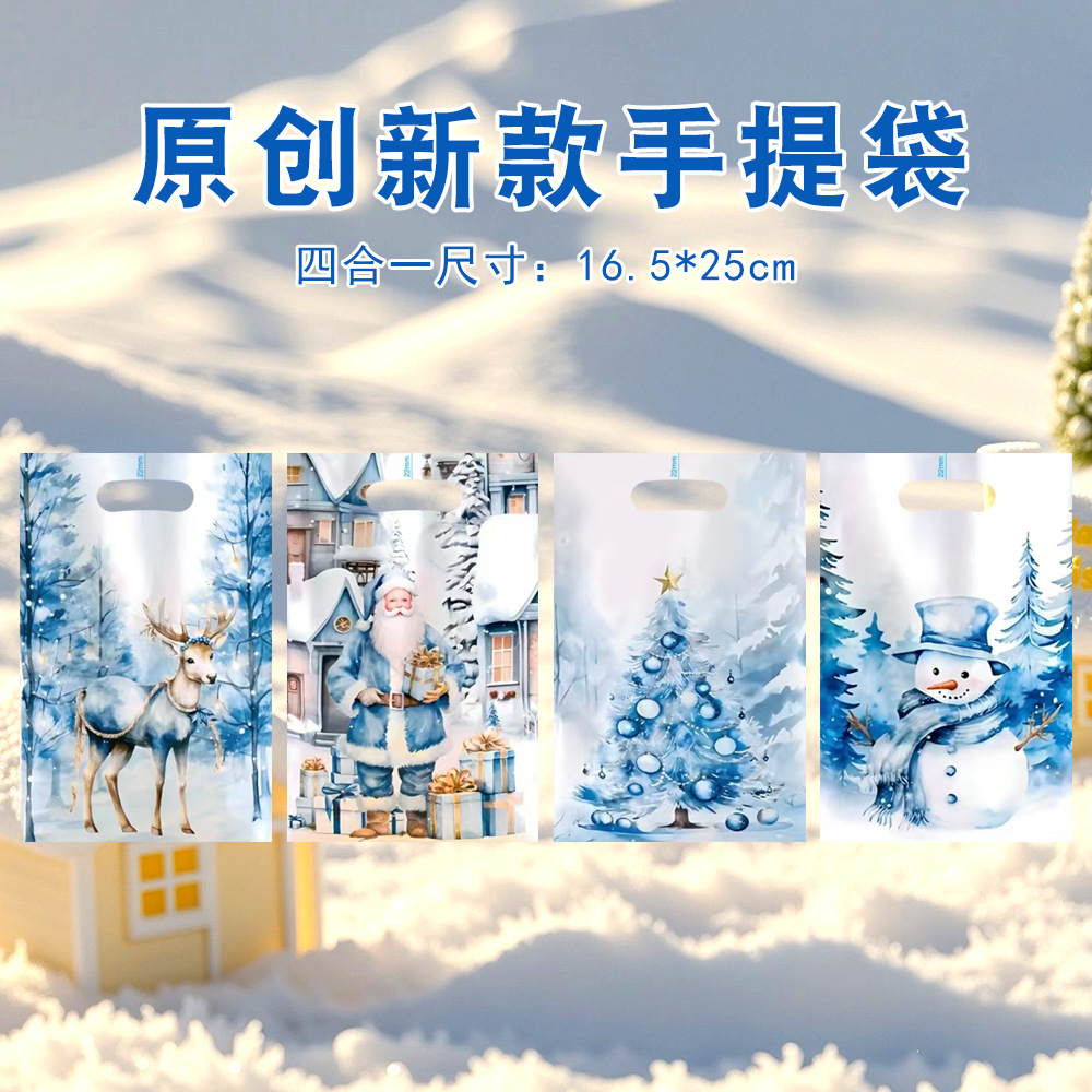 跨境圣诞节印花图案手提袋节日派对回礼袋珠光膜糖果包装袋批发