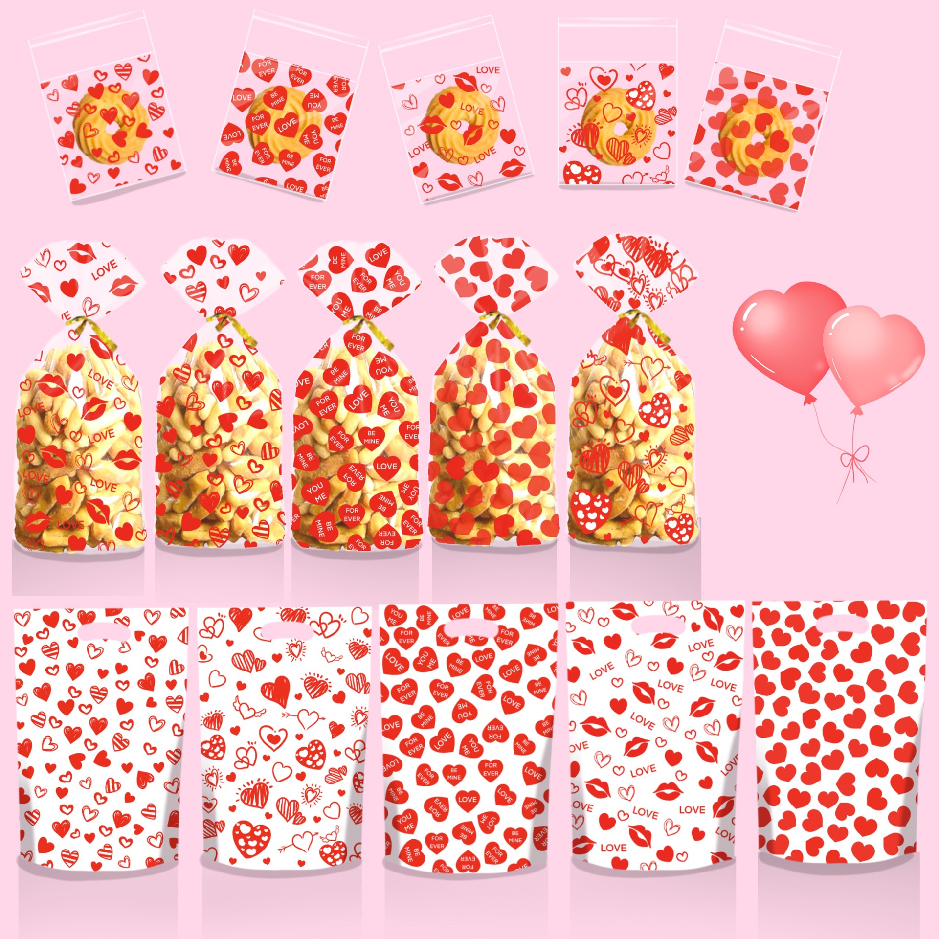 2025跨境新款情人节糖果袋红色爱心礼品袋透明零食饼干opp自粘袋