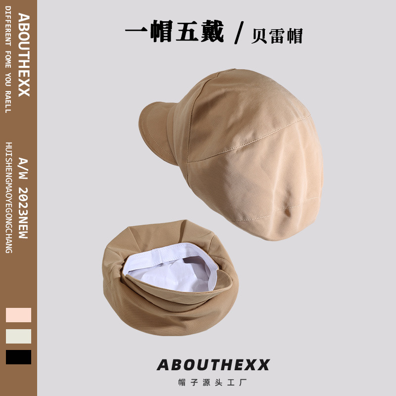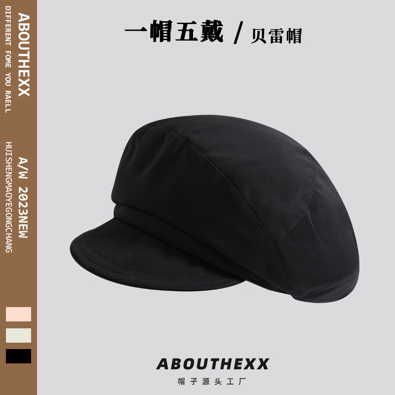 秋冬の新型の帽子の女性の帽子の4つは多種の戴法貝雷の八角の帽子の大きい頭の周りの復古のアヒルの舌の雲の帽子をかぶせます。