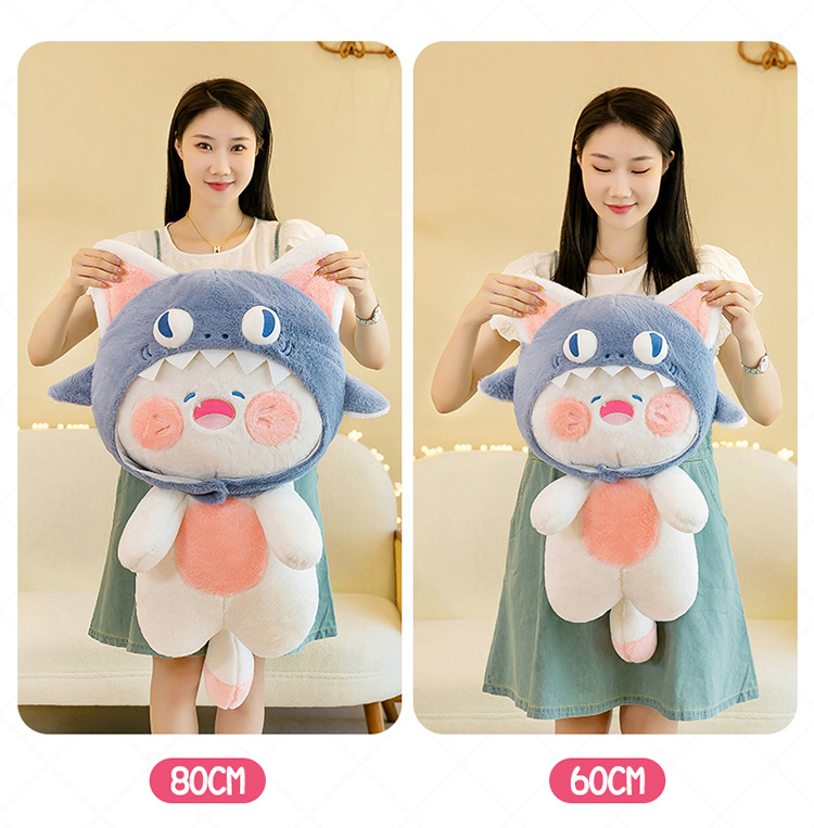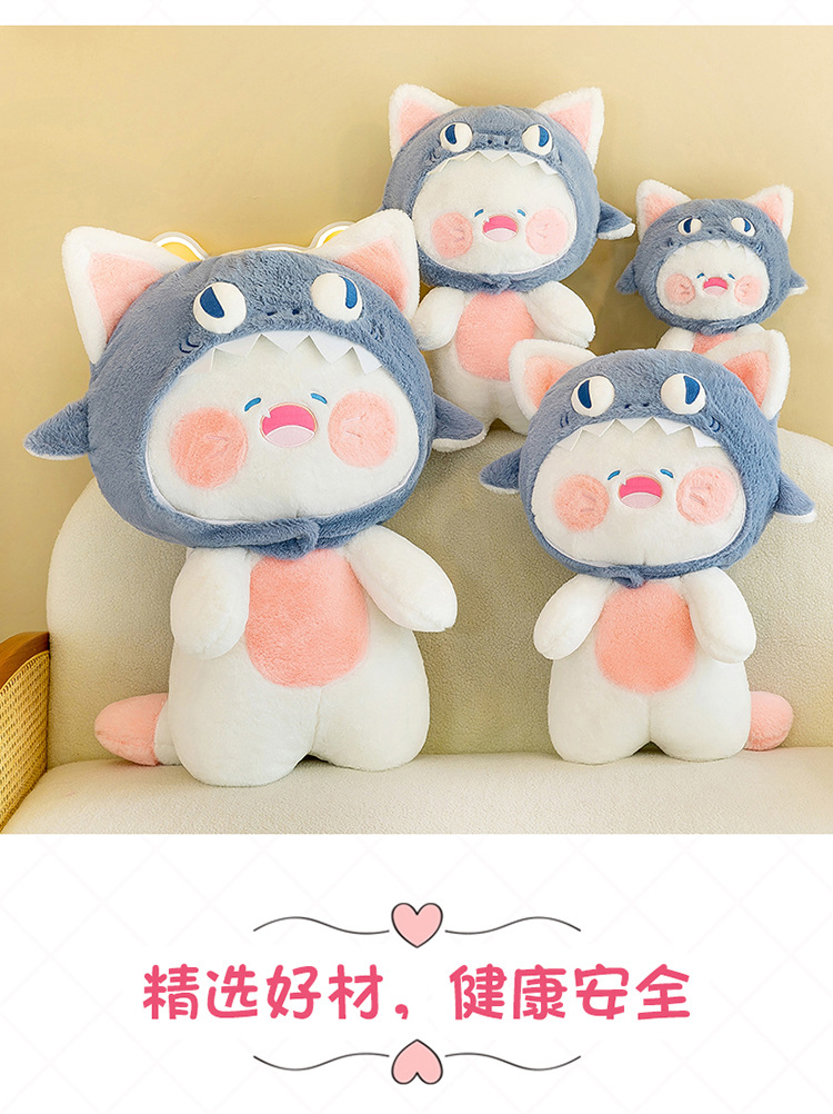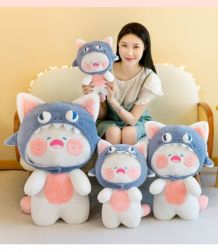 カラー サメ猫人形 (帽子は脱ぐことができる)