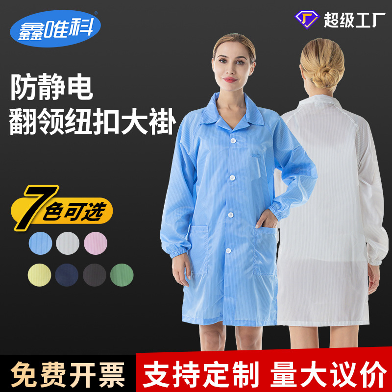 工場直売静電気防止服コートストライプ襟付き防塵静電気防止服ブルークリーン作業場クリーン作業服