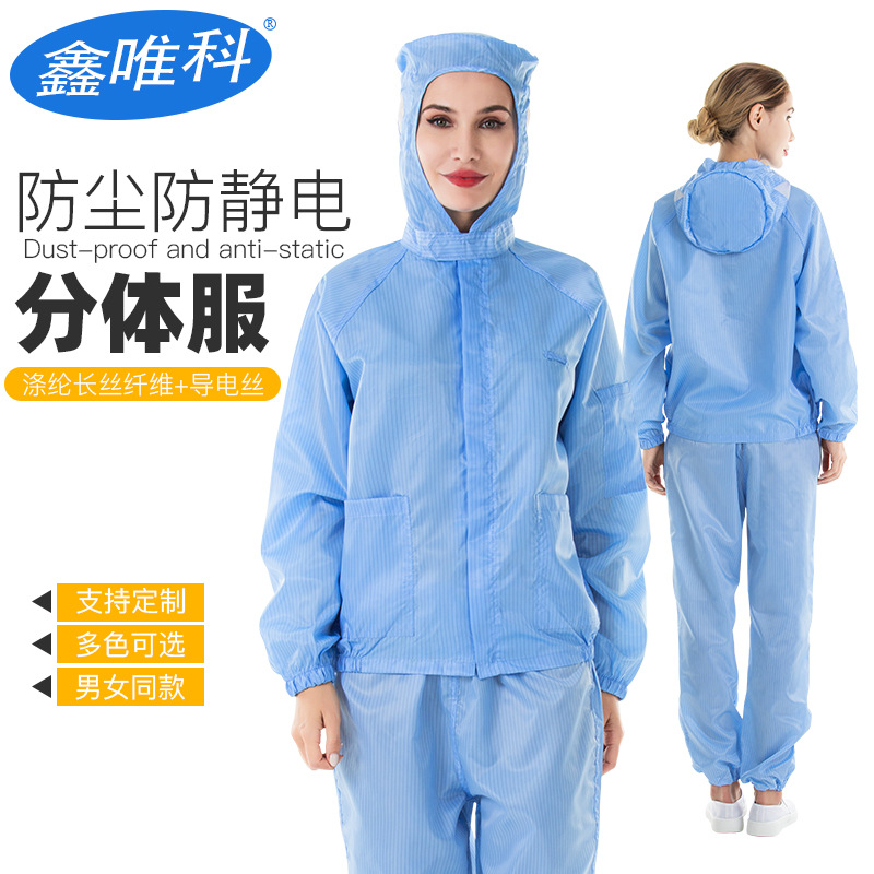 メーカー卸売り静電気防止作業服大衣帽子付き電子工場食品医薬工場男女タイプクリーン服