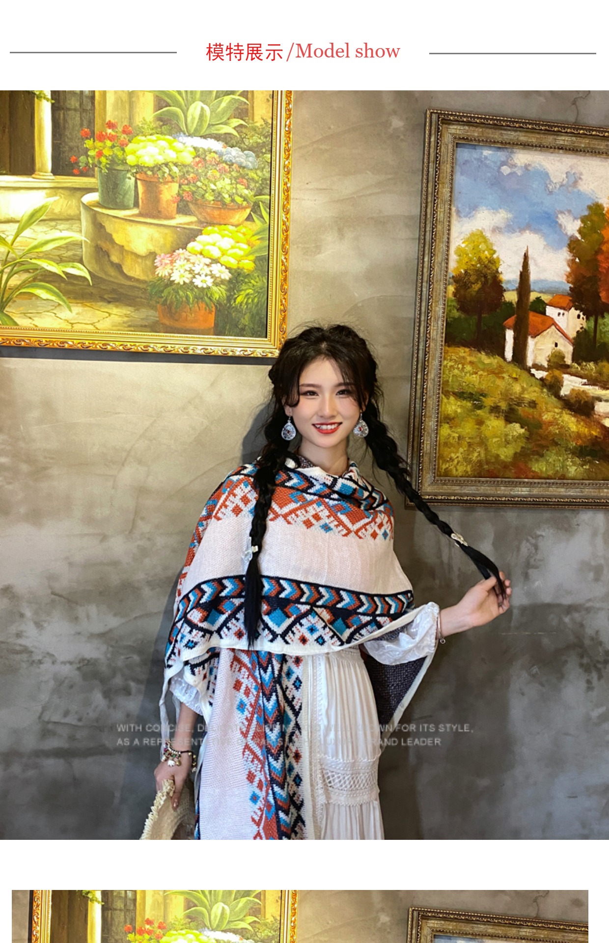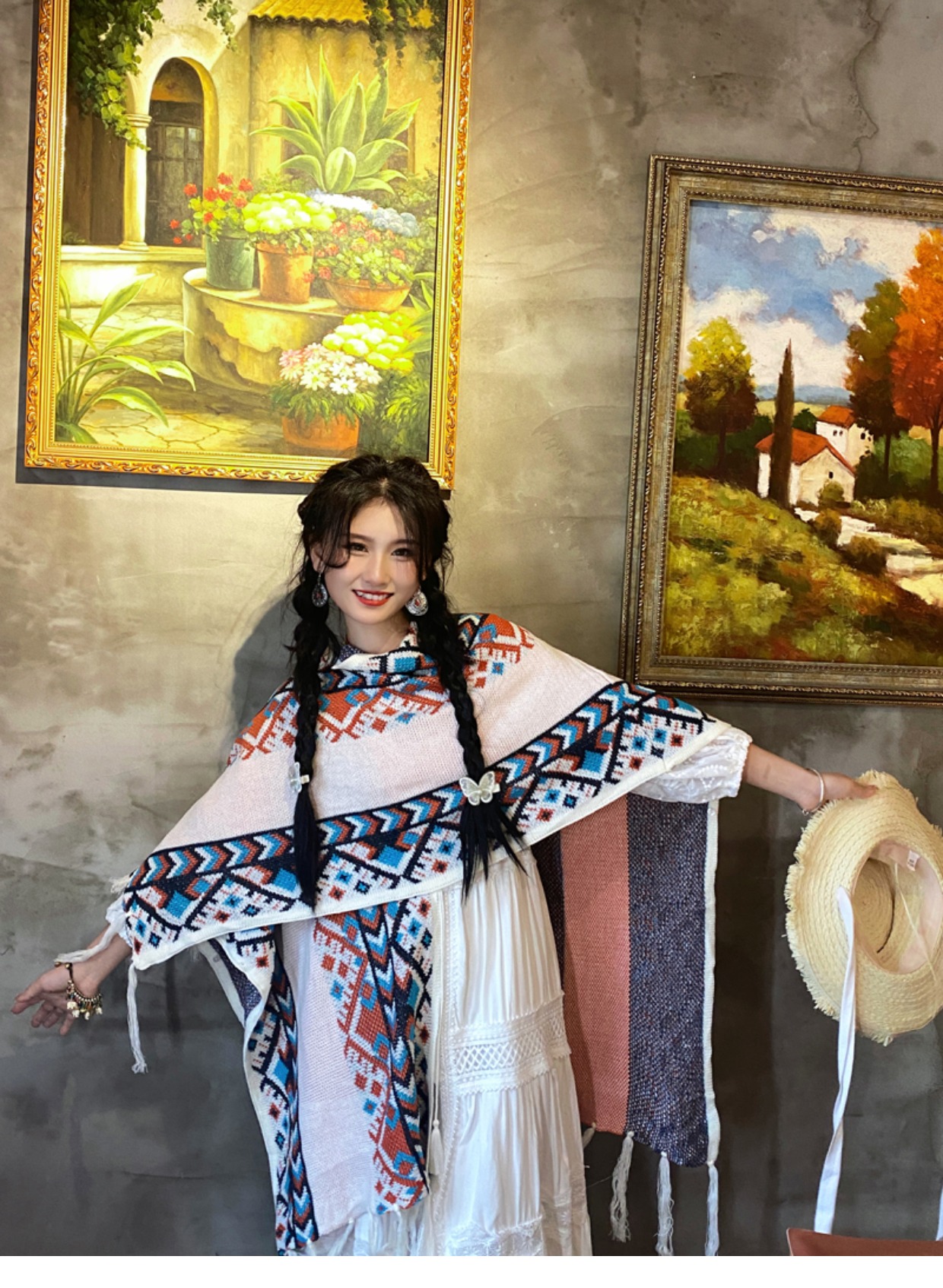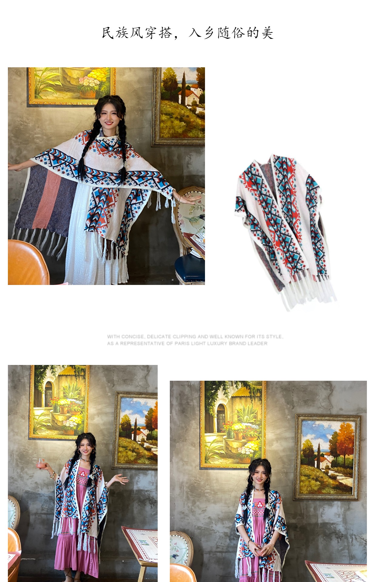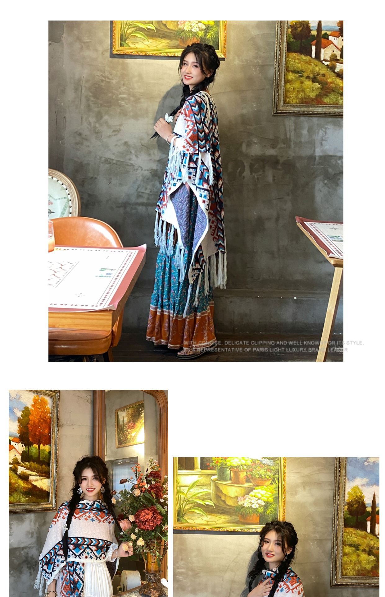 新型の流蘇民族風のマントの女性雲南チベット旅行は保温写真を着てマフラーを編みます。